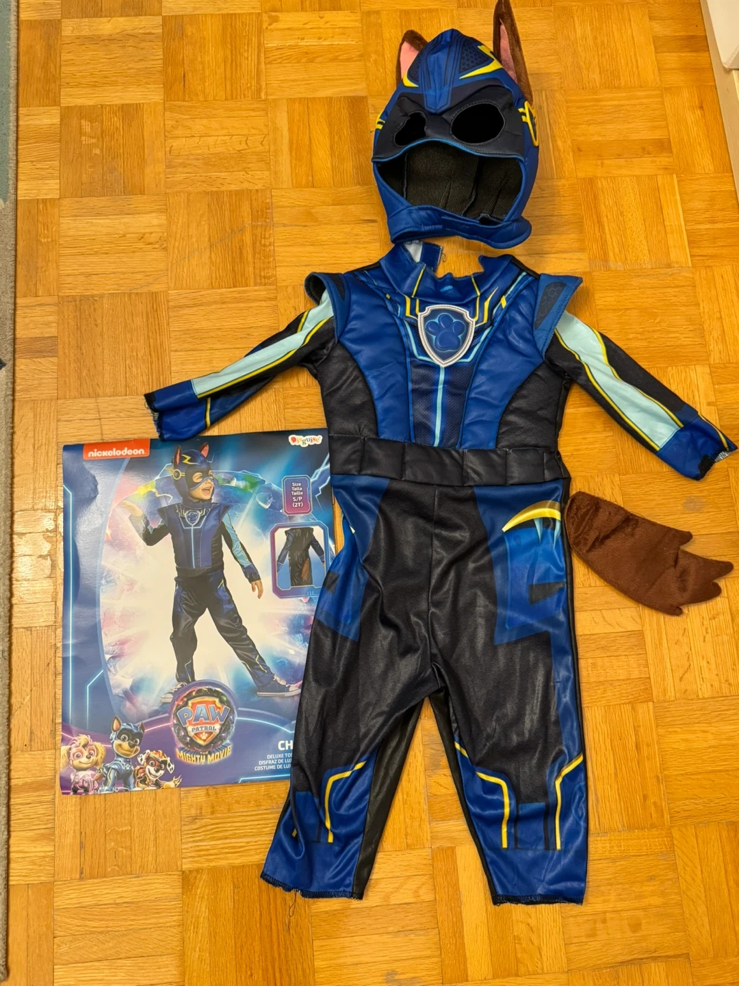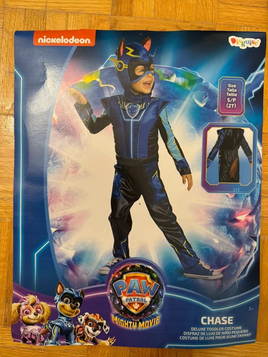 41Free for pick up- Paw Patrol Chase Mighty Movie costume in size S/P (2T). It's in great condition, used last year with my toddler. The costume includes the jumpsuit, headpiece, and tail.