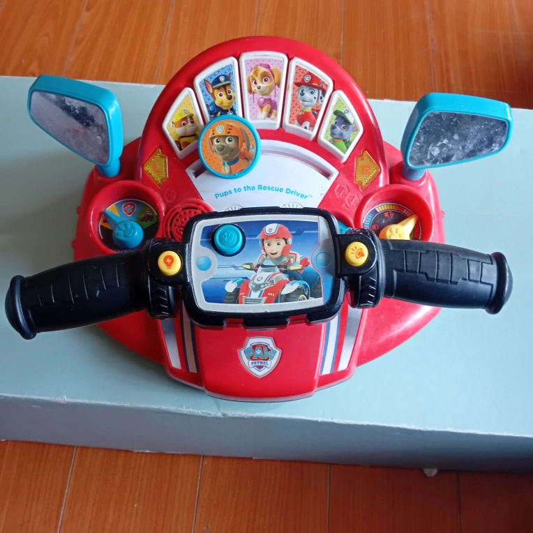 60A colourful motorcycle toy for kids. Features buttons and images. Has handles and side mirrors. You can make this motorcycle a part of your child's routine before bedtime for some calm playtime.