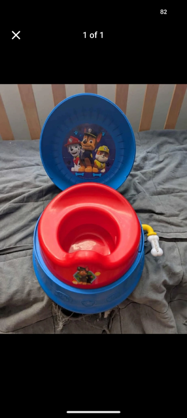 Paw Patrol themed potty seat! Features Chase, Marshall, and Rubble. Great for potty training your little one!