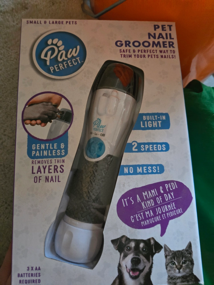 29Keep your furry friend's nails trimmed with this Paw Perfect Pet Nail Groomer! It's safe and perfect for trimming your pet's nails. It features a built-in light and 2 speeds (Hi-Lo-Off). It's gentle and painless and removes thin layers of nail. It works for both small and large pets and it's no mess! 3 x AA batteries are required (included)
