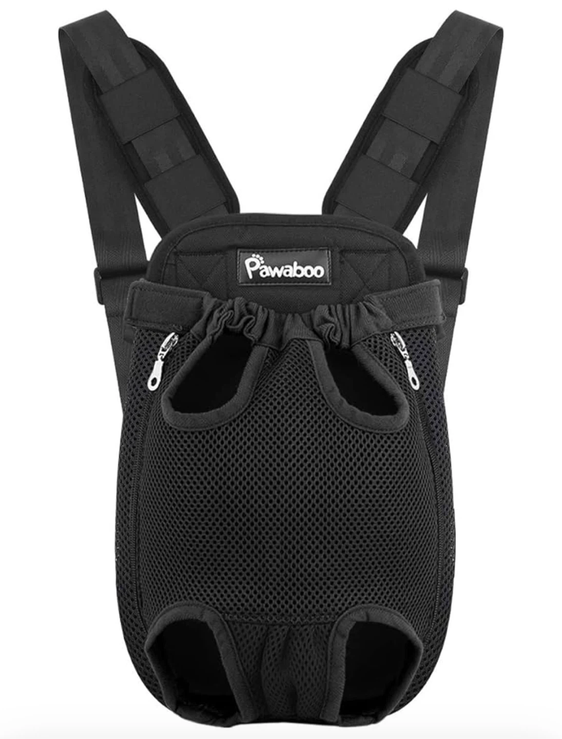 Pawaboo pet carrier backpack in size M and black colour. It's designed for your furry friend's comfort and your convenience. The carrier features wider straps for less burden and more comfort, a hook and loop closure to adjust to the size of your pet's head, and fabric covered elastic for flexibility and gentle support. The thicken inner sponge makes it cozy. Easy to use, breathable and comfortable for your pet