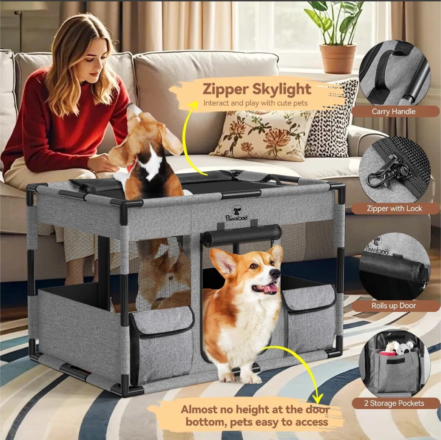 Pawaboo Portable Dog Playpen - Large Pet Crate New See pics for measurements thickened PVC pipes and connectors make the dog playpen structure solid