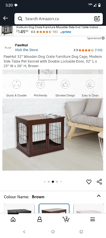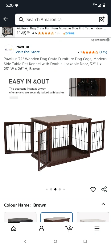 Selling a PawHut 32" wooden dog crate furniture. It's a movable side end table pet kennel with a double lockable door. Dimensions are 32" L x 23" W x 26" H. It's in brown colour. Originally bought for $149.99 sealed in box brand new