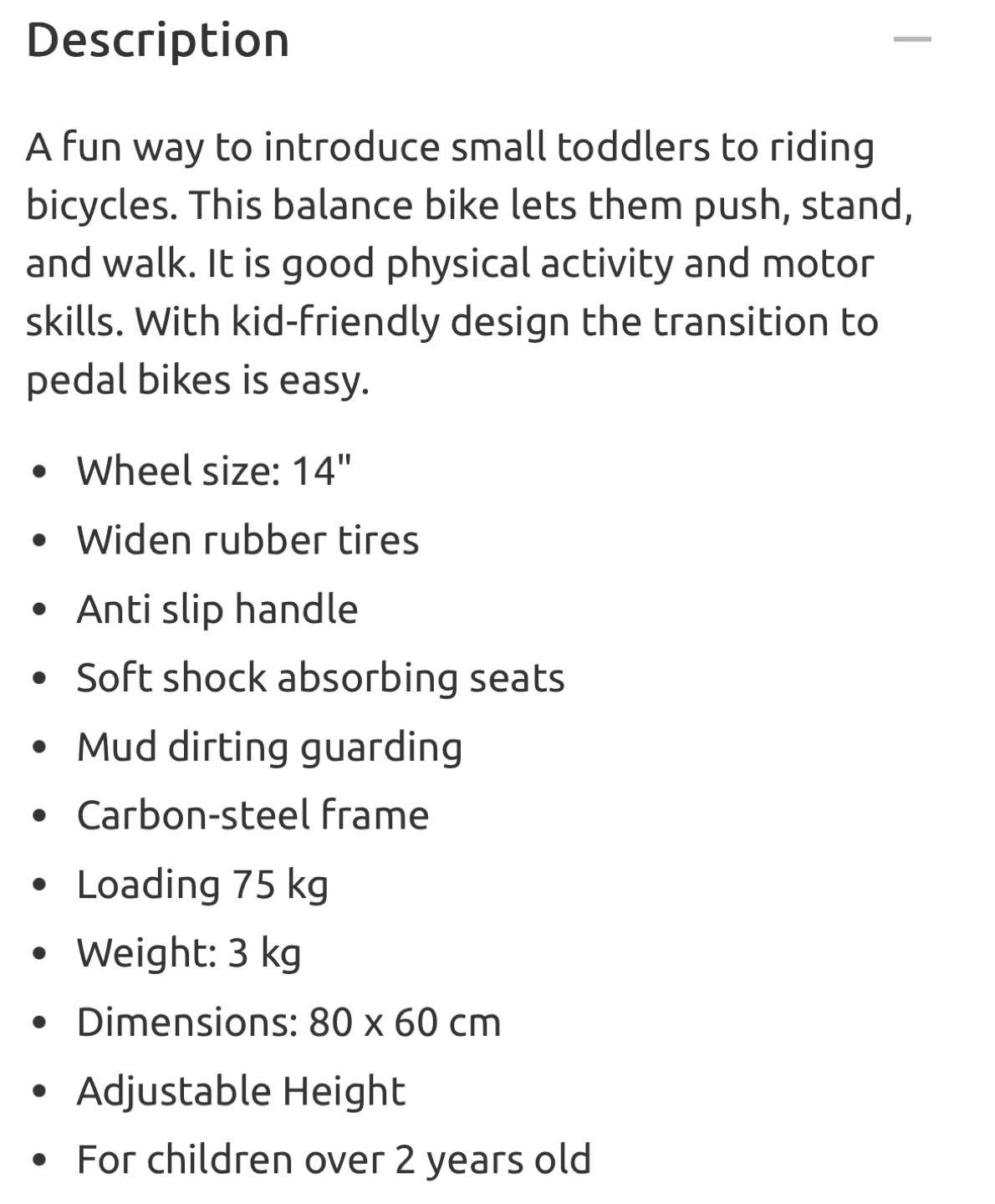 Suitable for children over 2 years old, it supports a loading of up to 75 kg and weighs only 3 kg