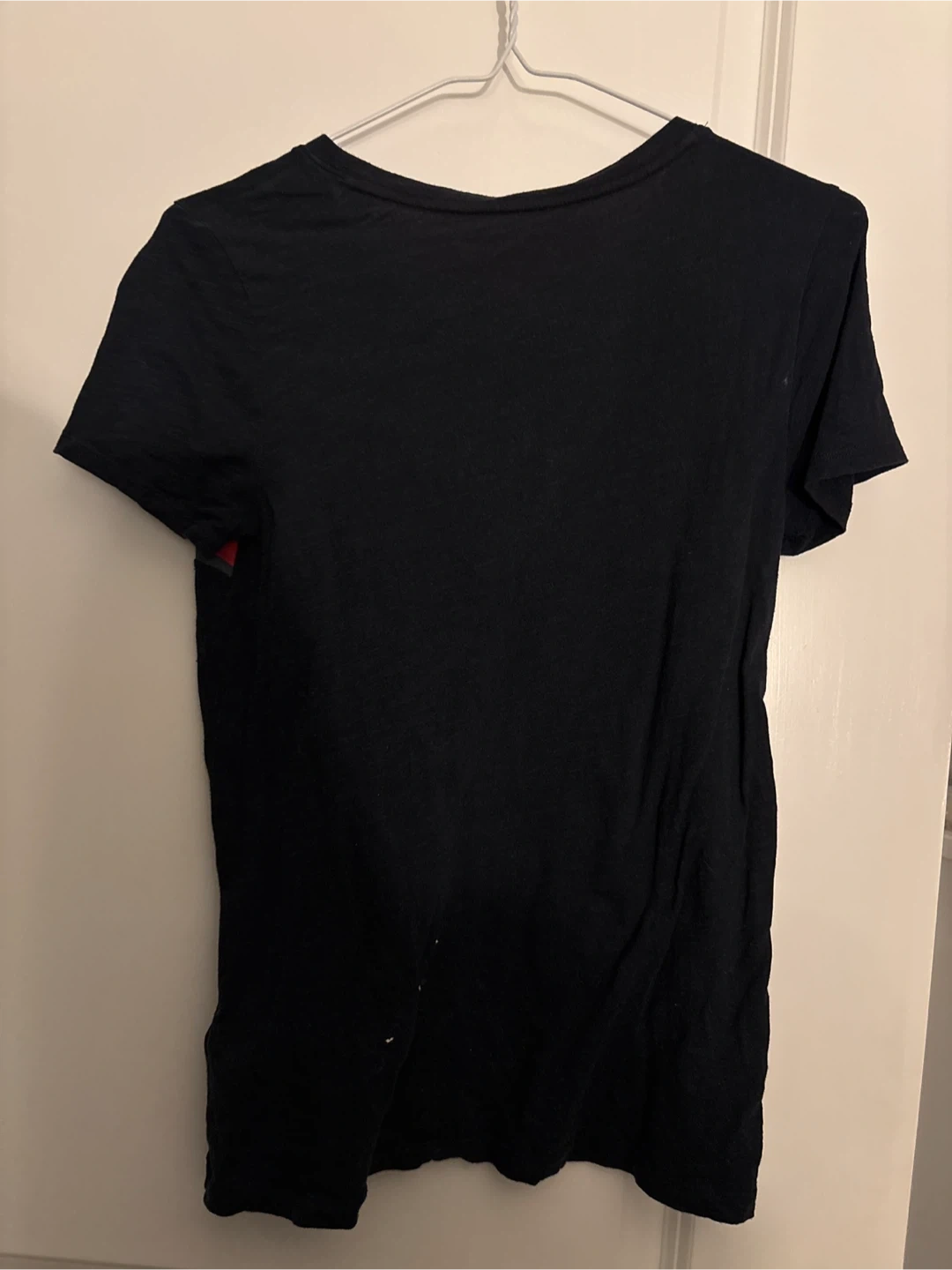 This is a Tommy Hilfiger women's navy t-shirt. It's a size XS (fits XS/S). It features the classic Tommy Hilfiger stripe design across the chest. Made from a comfortable cotton blend.