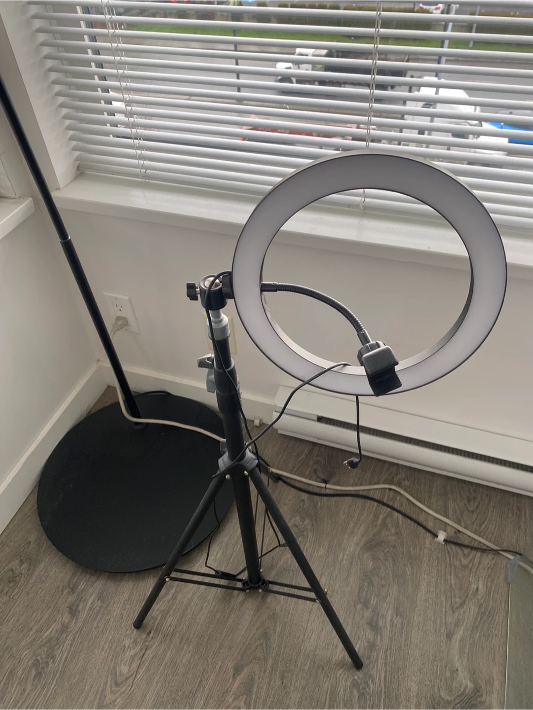 This ring light comes with a tripod stand for easy setup. It's perfect for creators needing good lighting for photos or videos. It includes a phone mount.