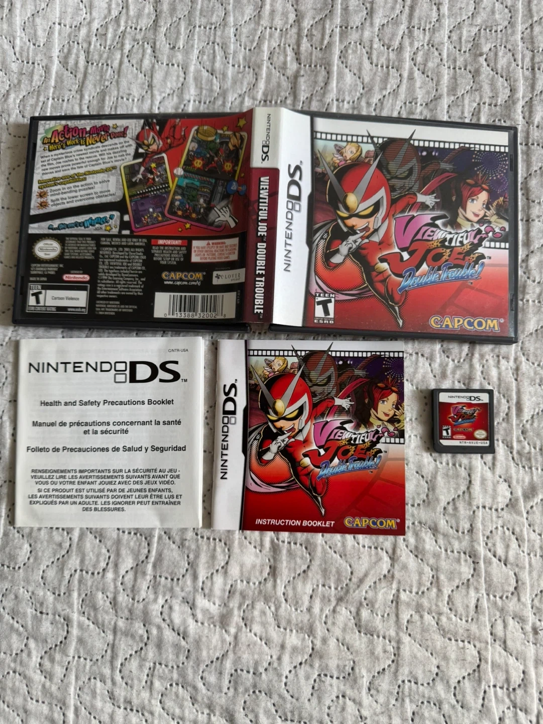 This is the Viewtiful Joe Double Trouble! game for Nintendo DS. It includes the game cartridge, original case, and instruction booklet. ESRB rating is Teen 2005. CIB.