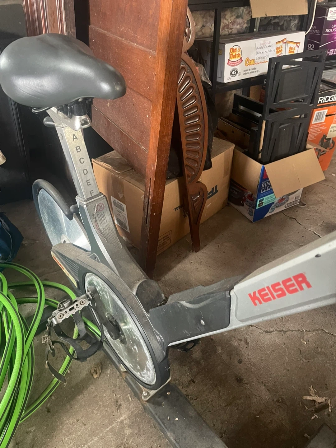 This is a Keiser M13 spin bike. It's a solid piece of equipment for your home gym. The resistance is adjusted via a lever on the frame. It's a good option for cardio workouts. Cash only buyer collects