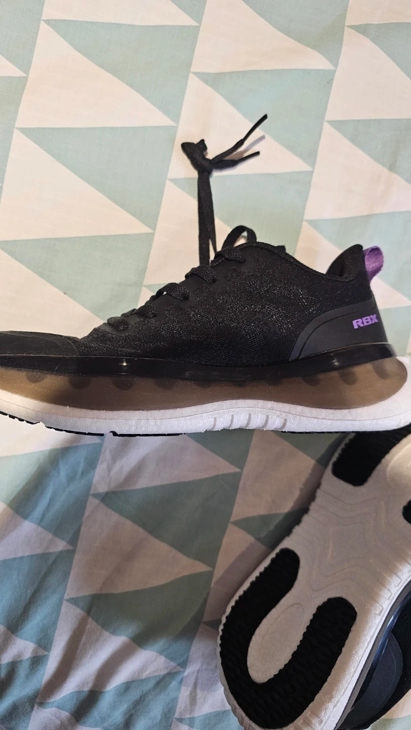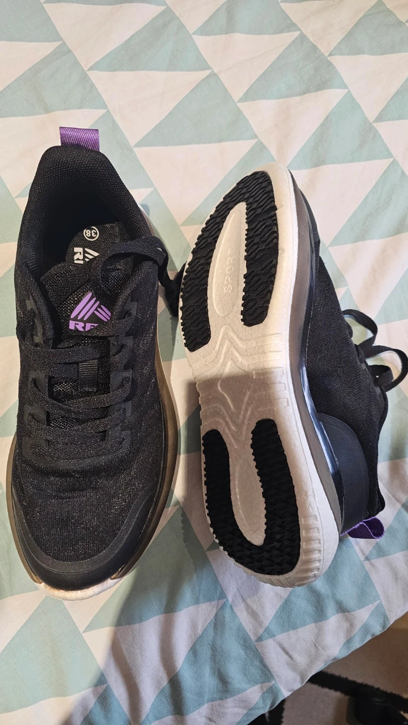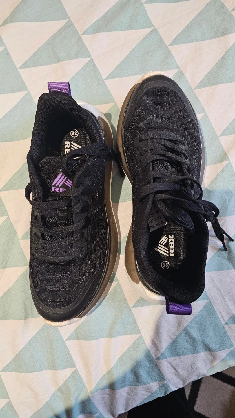 Black RBX athletic sneakers for women, size 38. These shoes feature a breathable mesh upper and a supportive sole. "Sport" is visible on the outsole.