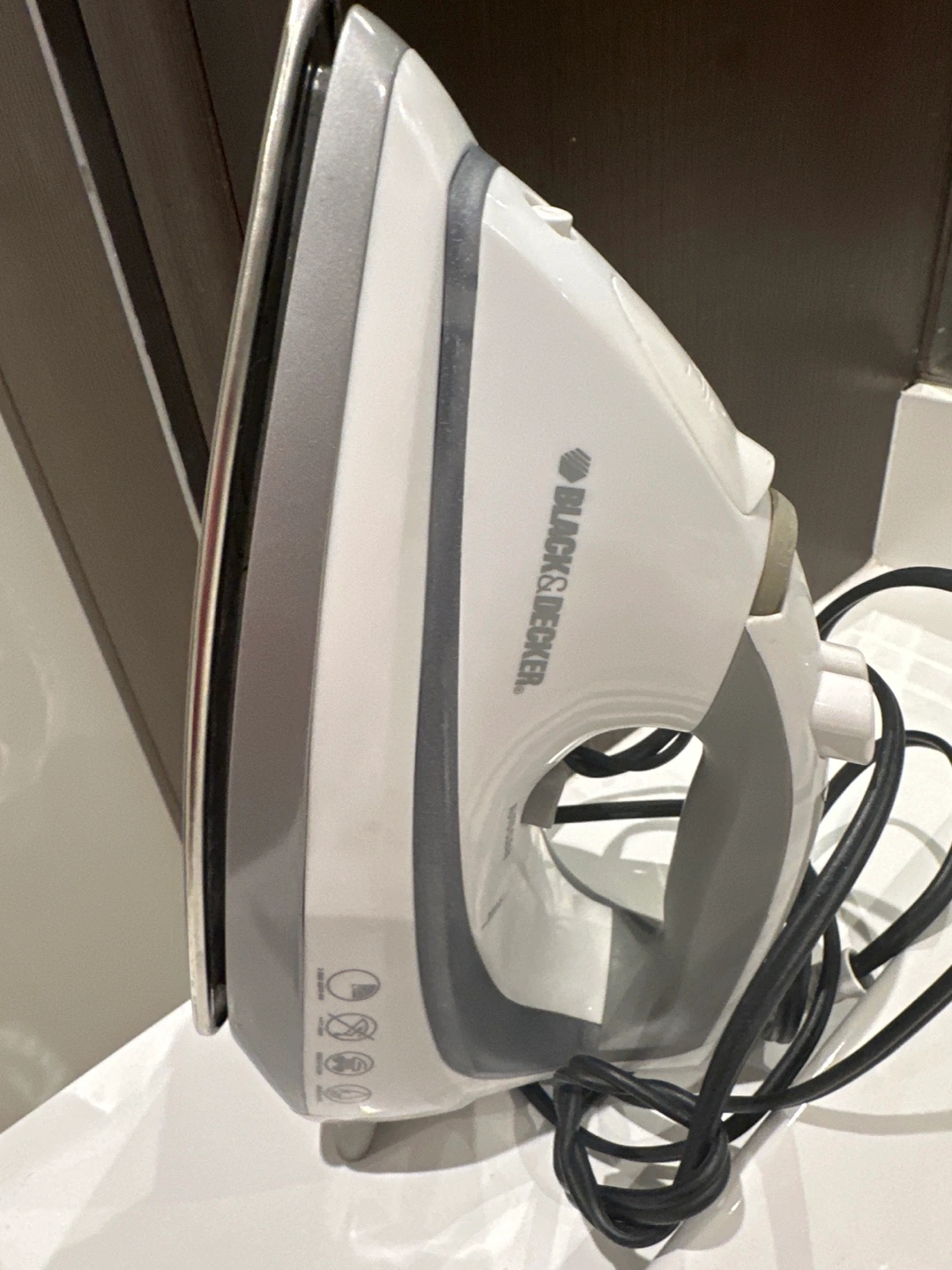 Used Black & Decker iron, good condition. Sunbeam GreenSense tourmaline hair dryer, wall mountable. Minor cosmetic wear.