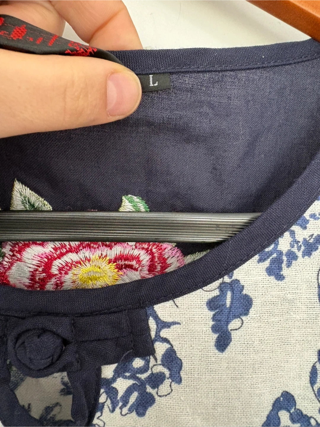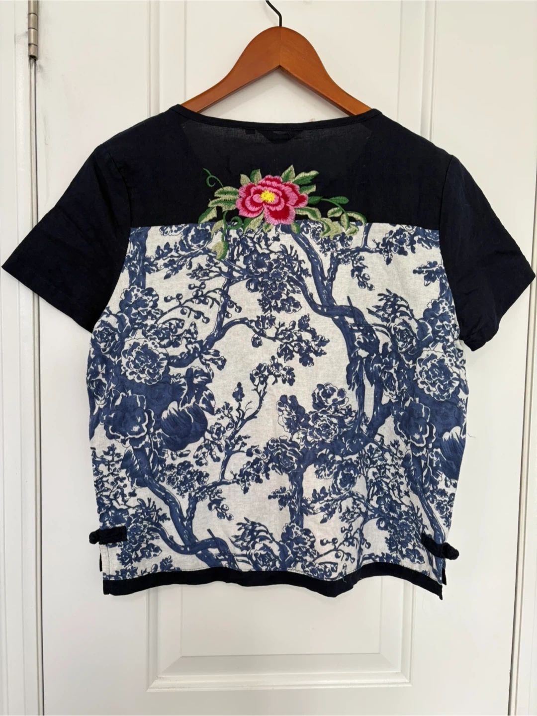 Great condition short sleeved top embroidered with flowers. Perfect for spring! Size large. Knot details on the sides. (See last photo.) No imperfections. Pickup near Sherbourne and Adelaide Street East or sometimes at some TTC stations.