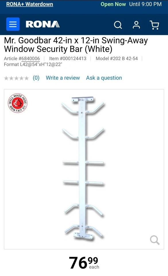 Mr. Goodbar Window Security Bars (2) - Heavy Duty