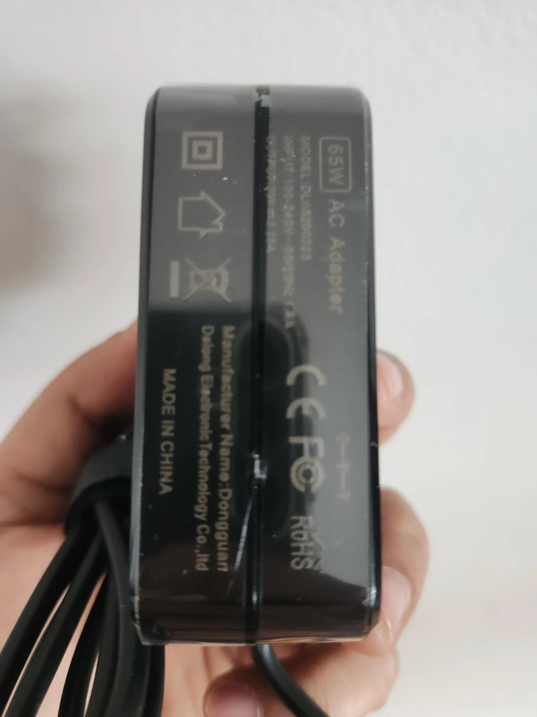 This is a 65W AC adapter power supply charger. It outputs 100-240V, 50/60Hz, 1.5A.
