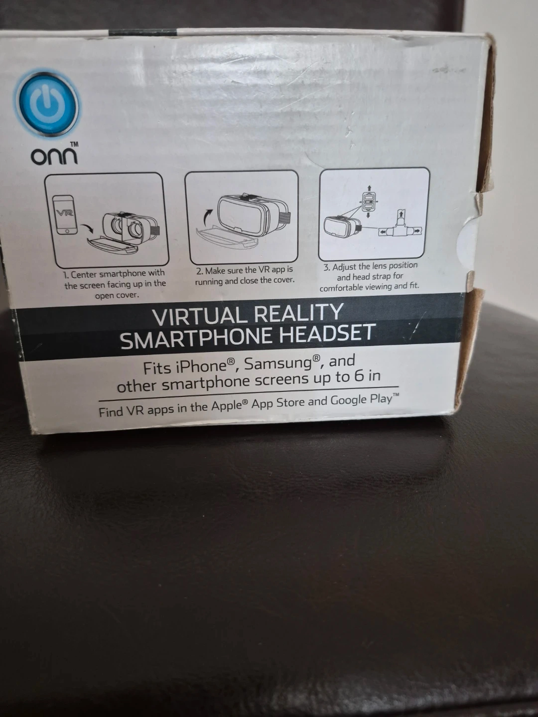 This Onn. virtual reality smartphone headset lets you explore VR apps. It fits iPhone, Samsung, and other smartphone screens up to 6 inches. Features include adjustable optical focus and a padded face guard for comfort.