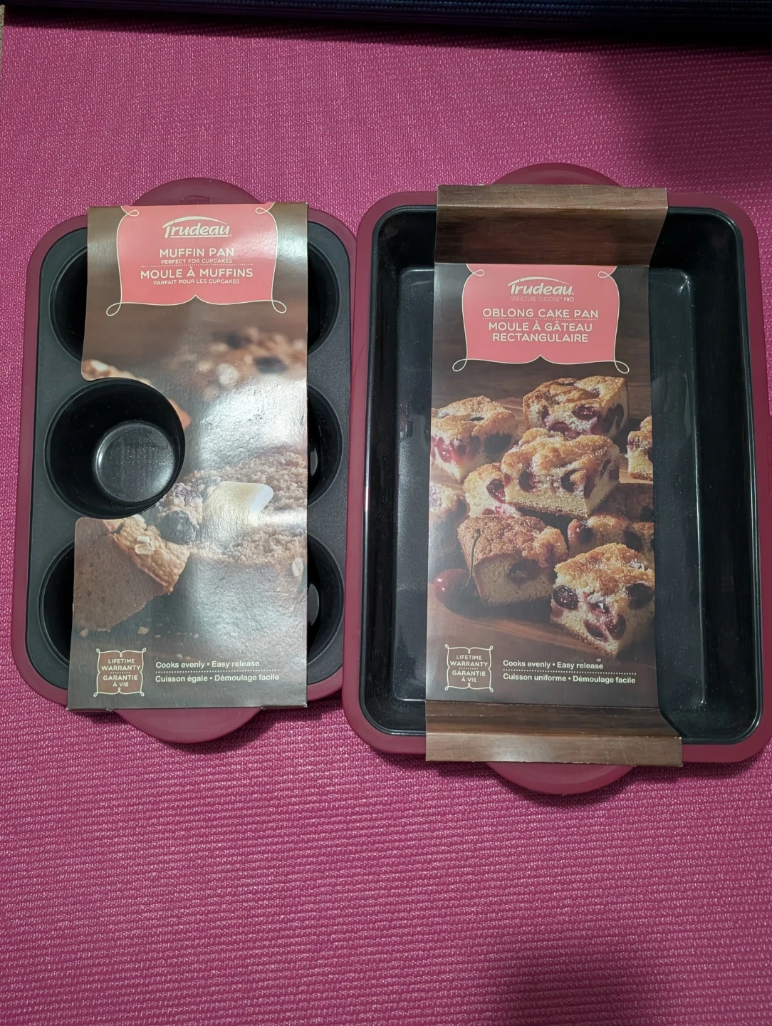This Trudeau set includes a muffin pan and an oblong cake pan. Both pans are designed for even cooking and easy release. They're perfect for baking cupcakes and cakes!