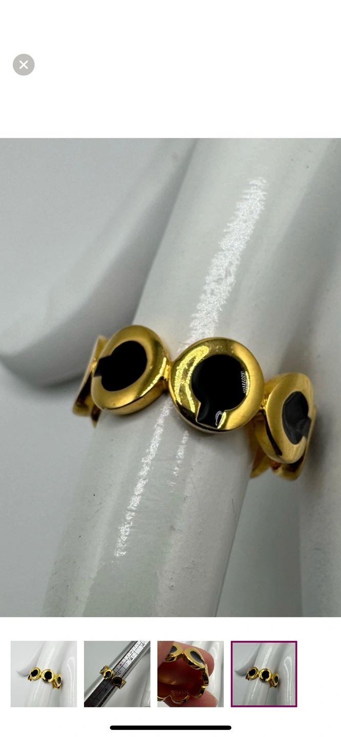 Vintage Coach Gold Tone Black Enamel Ring