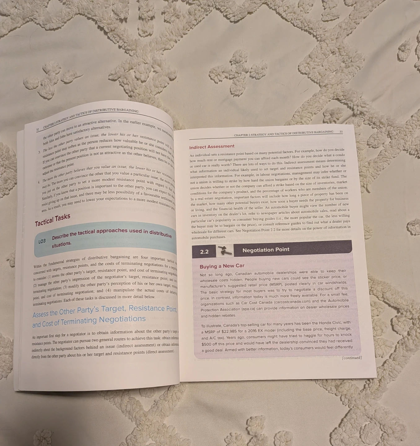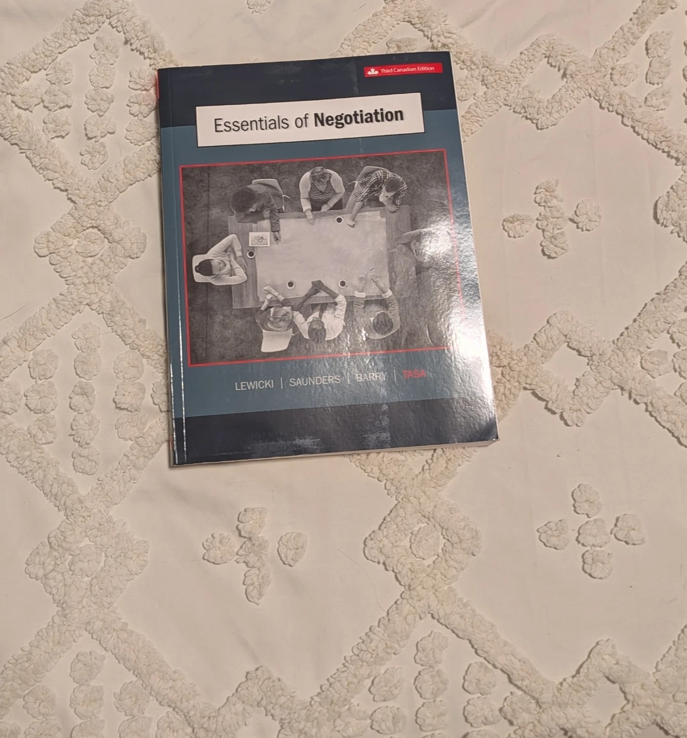 This textbook covers the essentials of negotiation. It's the Third Canadian Edition. Authors include Lewicki, Saunders, Barry, and Tasa.