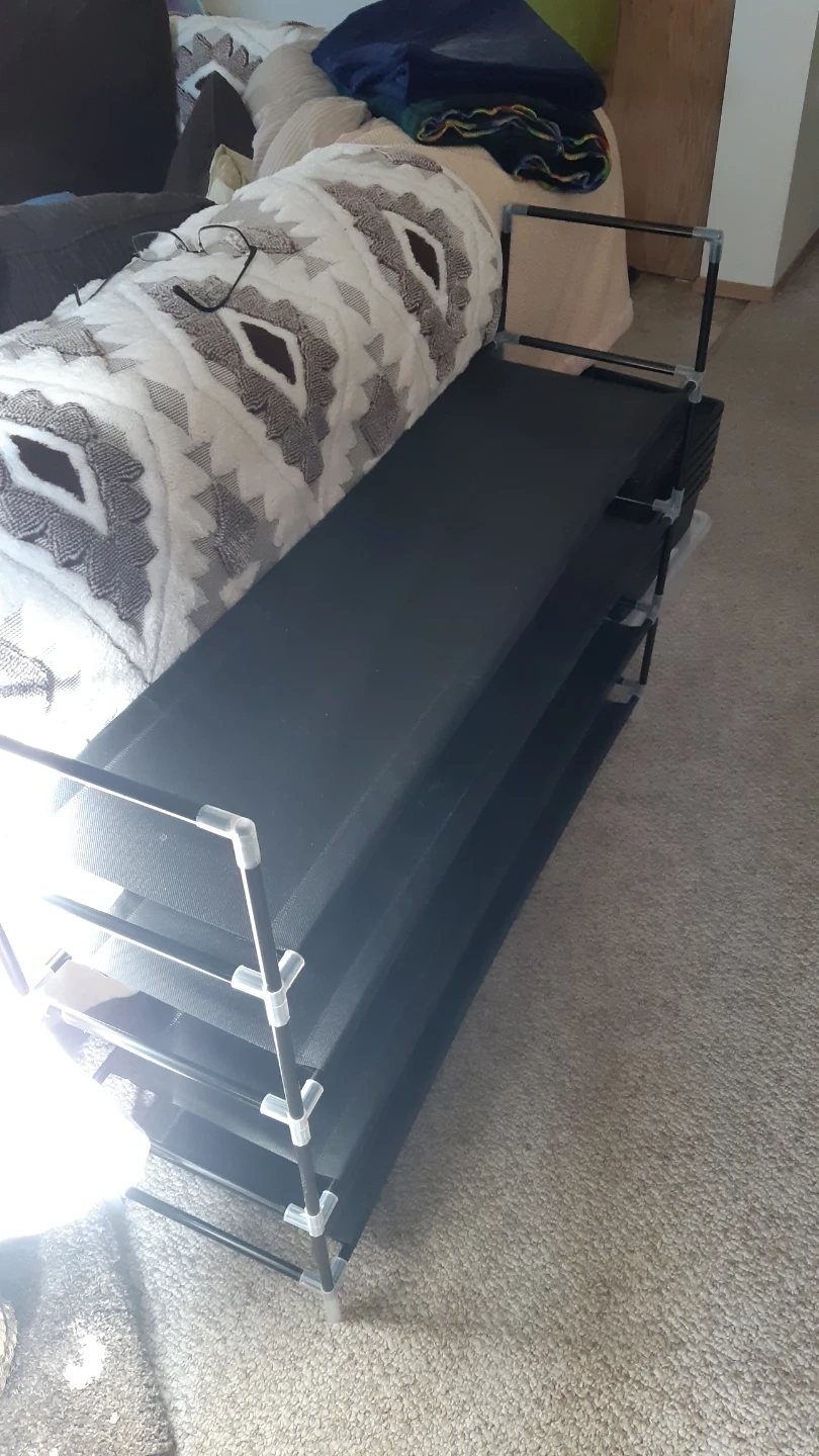 Like new. Holds 16 pr. Adult shoes. Black heavy duty plastic with wipeable fabric shelves. 38.5" wide 29.5" tall and 10.5" deep. Pick up location is close to Calgary Trail and 51 ave