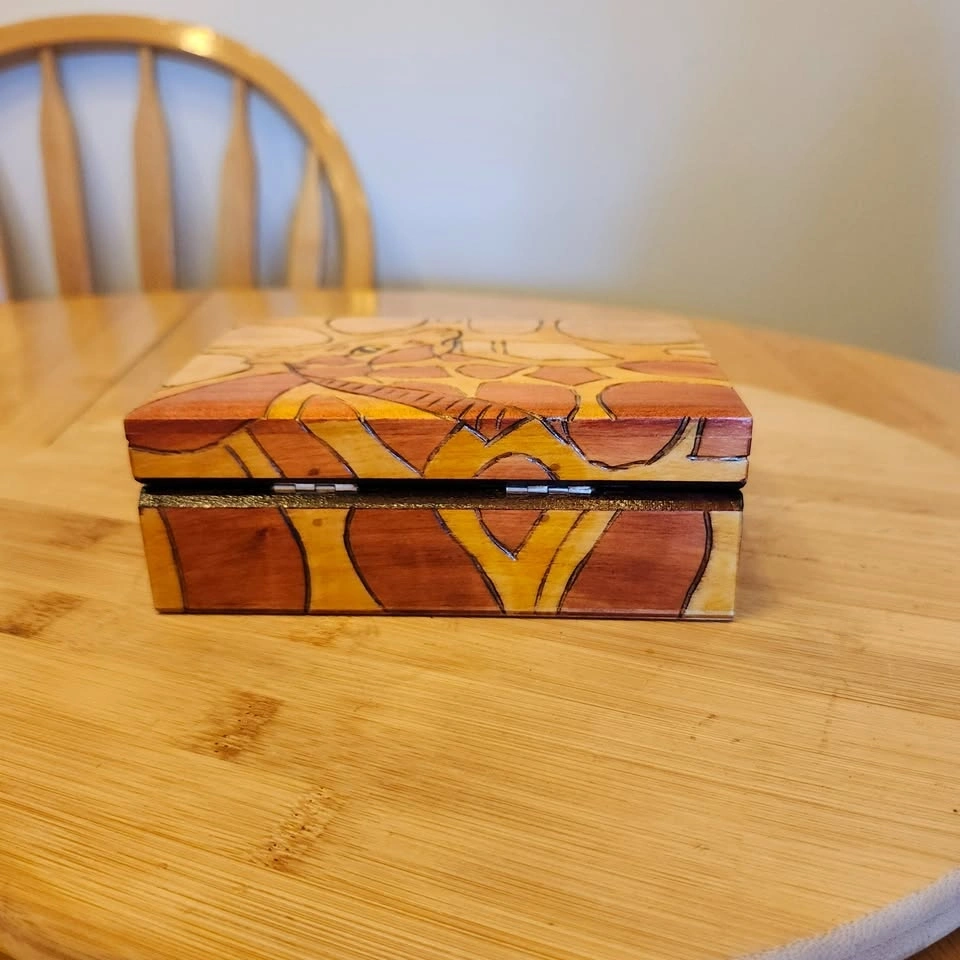 Painted Engraved Giraffe Trinket Box, Keepsake Box, Decor