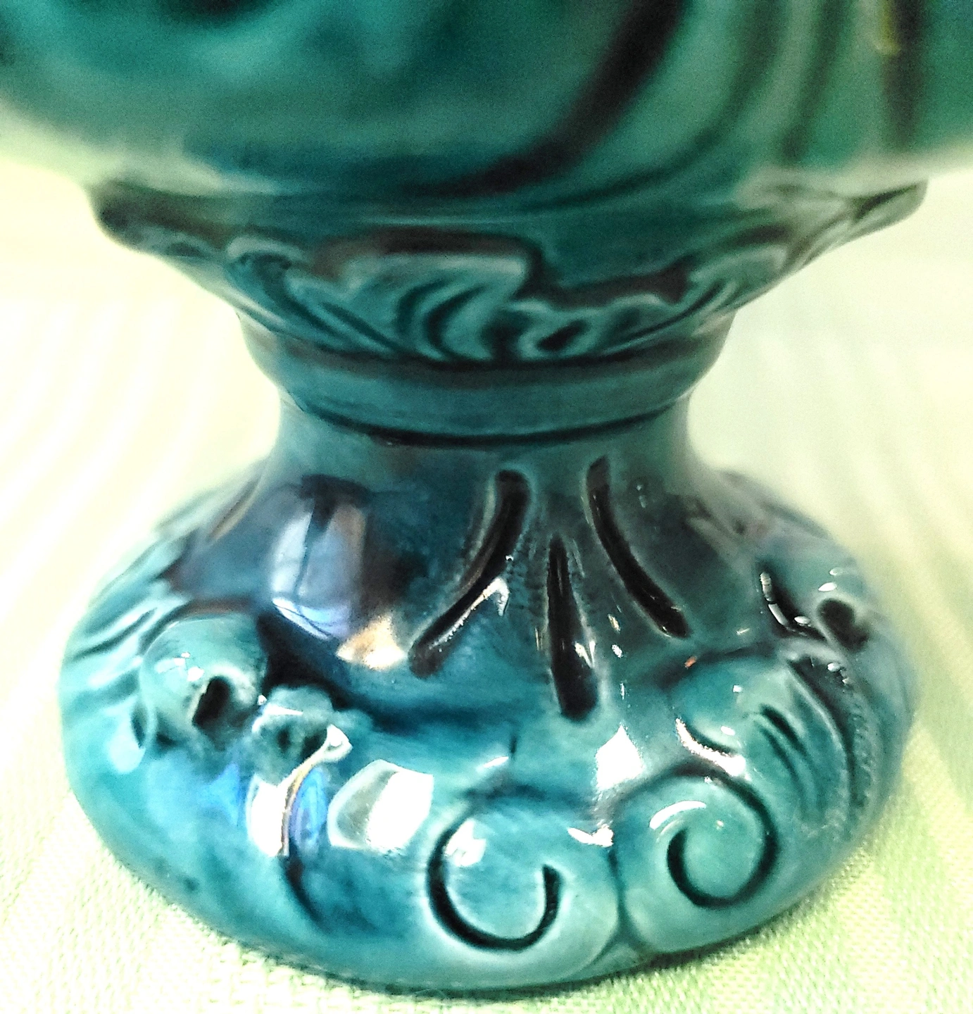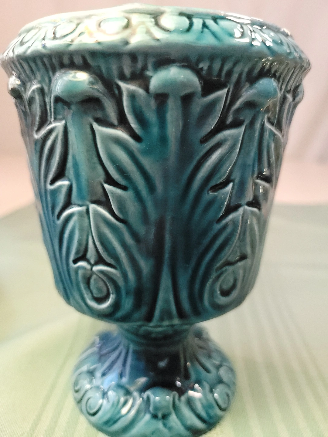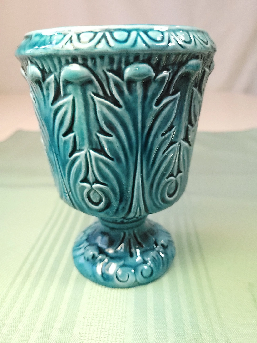Circa 1960 Turquoise Pedestal Urn Planter | Neoclassical Style
