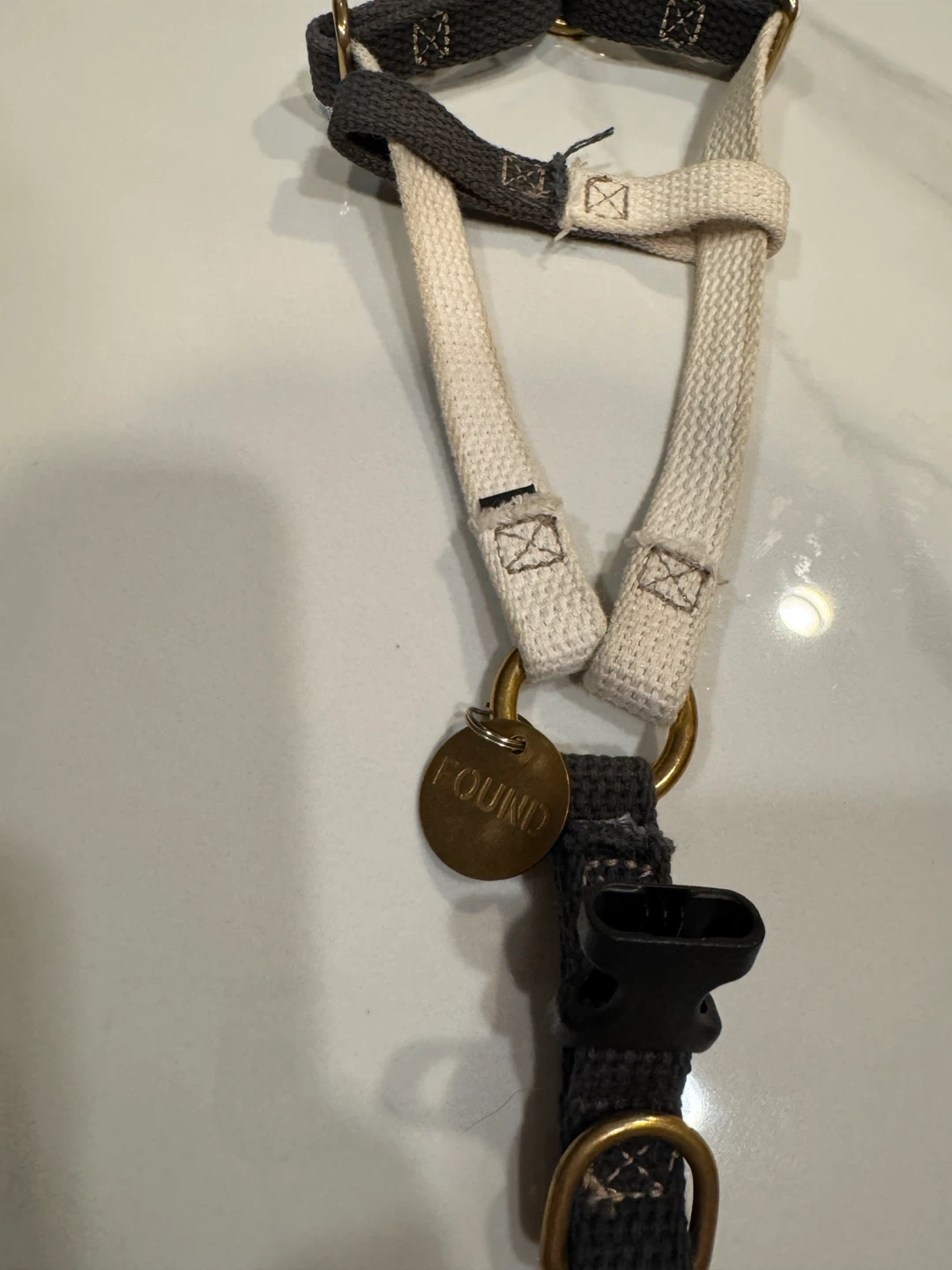 Hand dyed and crafted dog and cat harnesses from 100% cotton webbing. Top stitched with industrial thread for durability. Attached is a stamped FOUND tag. Made in Brooklyn.