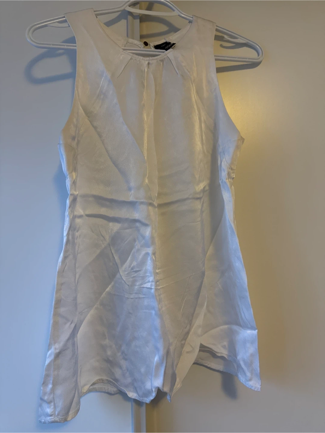 Selling a white sleeveless blouse! It's in great condition and would be a lovely addition to your wardrobe. Perfect for layering or wearing on its own during warmer weather