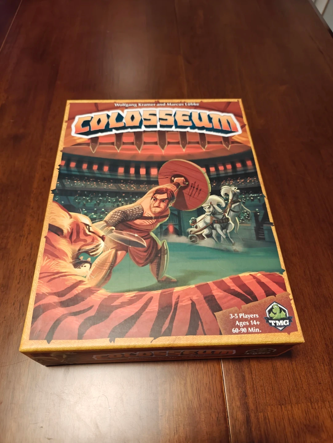 Selling the Colosseum board game! It's designed for 3-5 players, ages 14+, and play time is around 60-90 minutes. Great for a fun game night