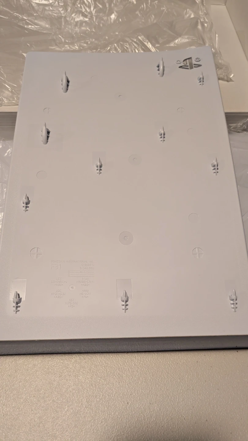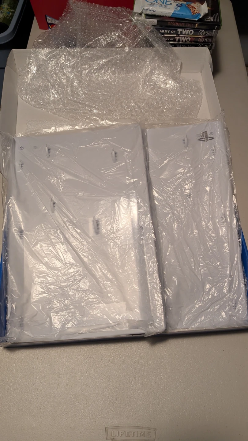 This is a set of white console covers for the Sony PlayStation 5. They're like new and in plastic wrapping. These are the side panels for the console itself.