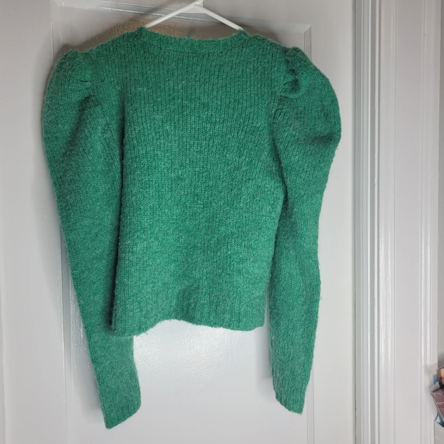 Cozy green knit sweater from Derek Lam 10 Crosby. It's a size S/P with distinctive puff sleeves. Lovely soft texture! Well loved
