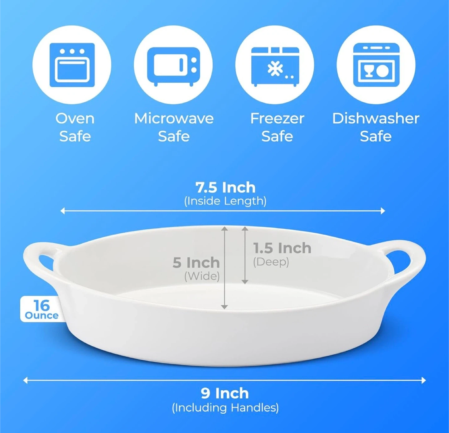Baking Dishes for Oven Safe and Microwave Cooking and Baking, 4 Pc. Set, Heat Resistant Ceramic with Handles for Serving, Small Mini Casserole Dish, 8" x 5", 16 oz, White!!