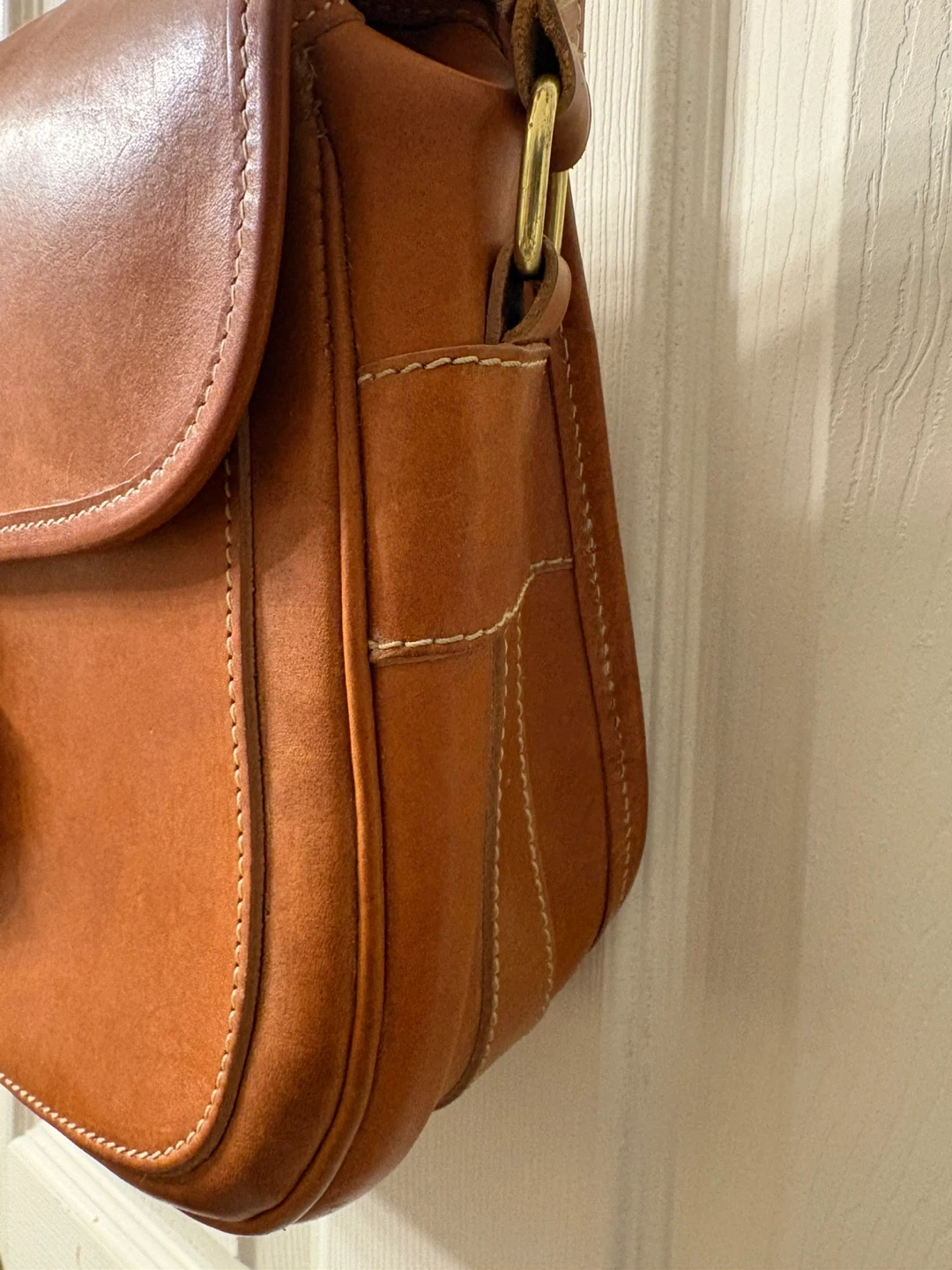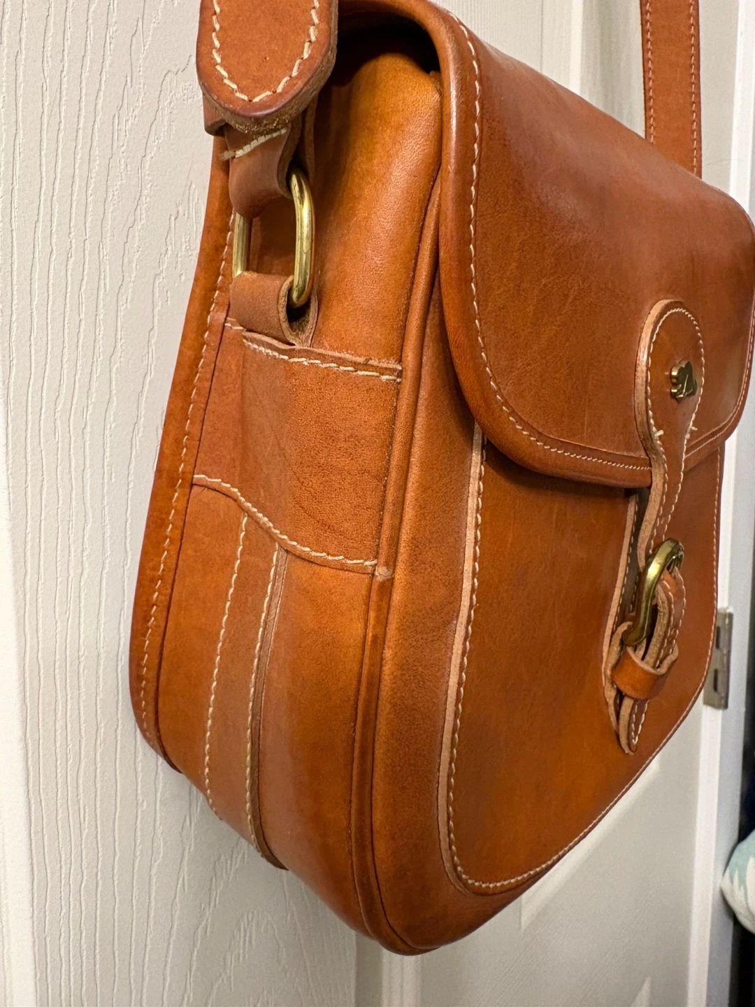 This is a classic saddle bag made by Roots. It's crafted from genuine, rich brown leather. The adjustable strap makes it comfortable to wear. This beautiful bag is in great condition, just like new! Pick up in Chestermere.