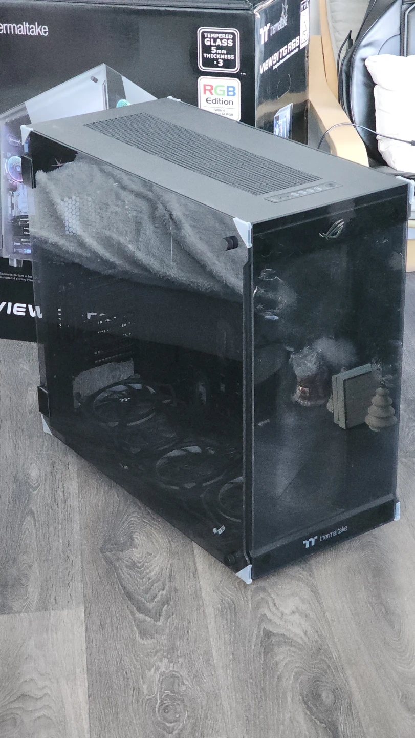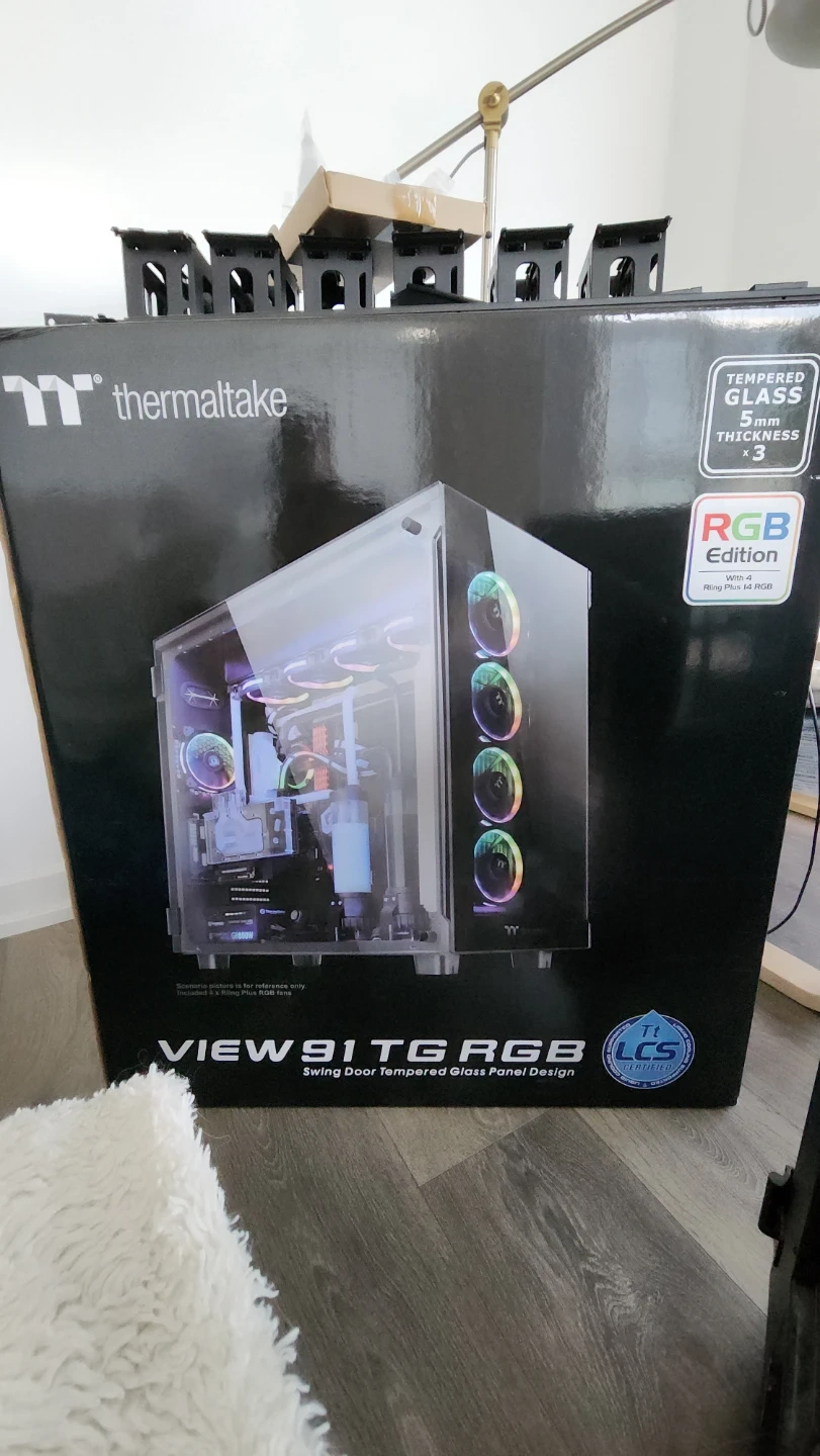 This is a Thermaltake VIEW 91 TG RGB Super Tower computer case. I originally got it for $500, selling it more than half off. I'm switching to all white setup that's why selling my old gaming work pc, otherwise this functions perfectly. It is a massive case for hardcore gaming enthusiasts that lets you build in whatever fashion you like, aircooled or liquid cooled, it can fit ABSOLUTELY ANYTHING in it given the super tower size. It features double swing doors tempered glass panel design. Supports up to 4 x 140mm fans and has multiple I/O ports, including USB 3.0 and Type-C.