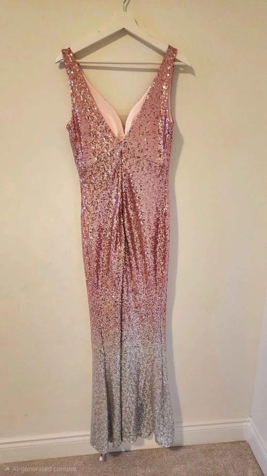 Pink Silver Gradient Sequin Gown - Size 12