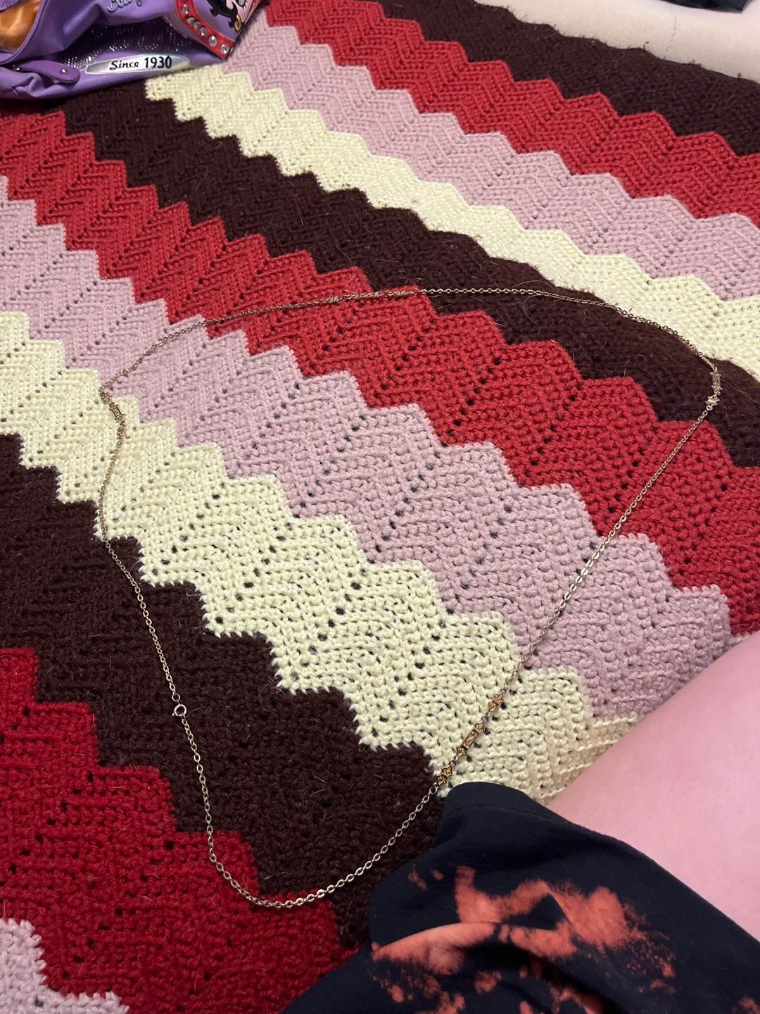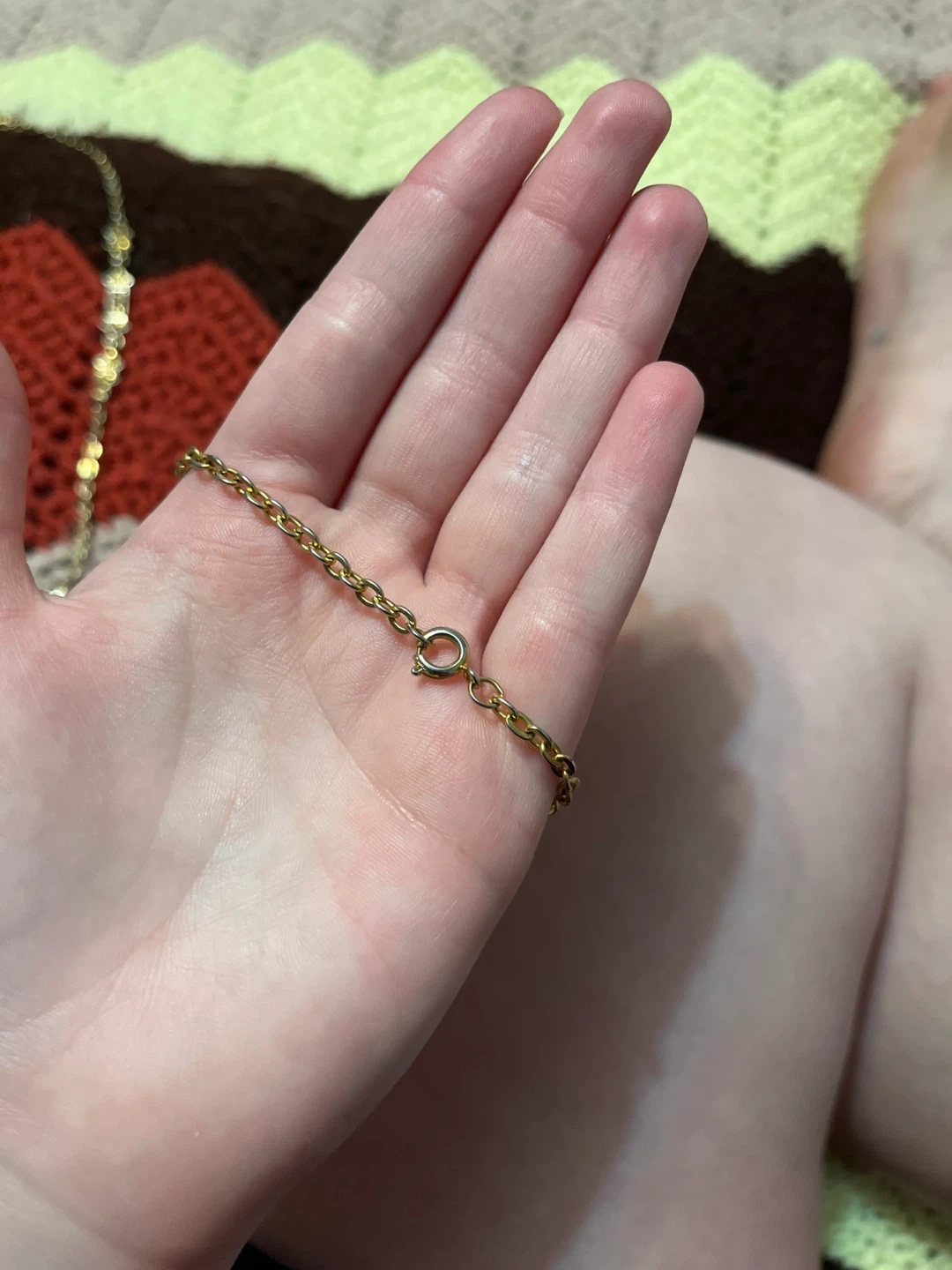 A delicate gold-tone chain necklace. Features a decorative clasp with intricate detailing. Its lightweight design makes it perfect for everyday wear. I think I got it for 25 dollars, probably not real but I don’t know, looking for 20 or 15 dollars.