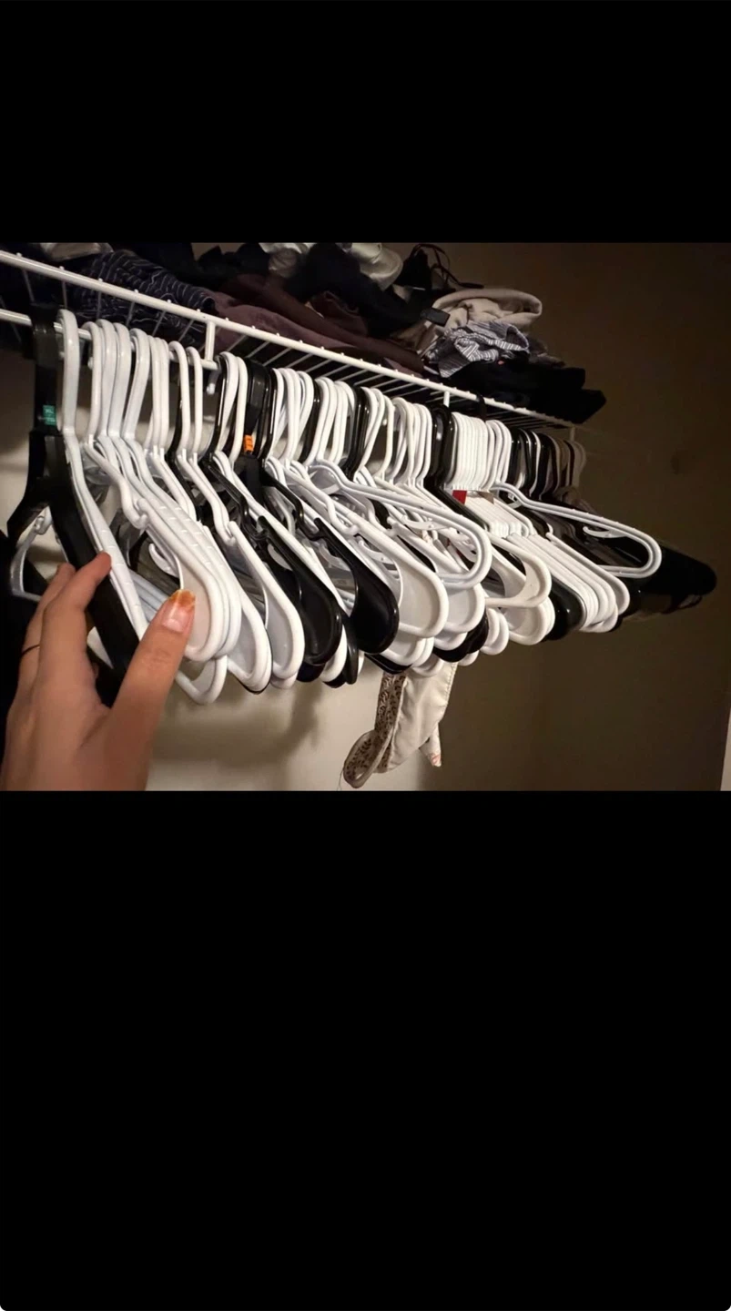 Selling a large assortment of clothes hangers, including both black and white plastic options. These are great for organizing your closet! You'll get a good mix to handle all your clothing storage needs. I have at set of 90 hangers will be selling them for $15 .. please dont tell me to reduce the price.. i have already put a very low price for all these hangers.. bought it in November.. two months ago. Its a moving out sale.
