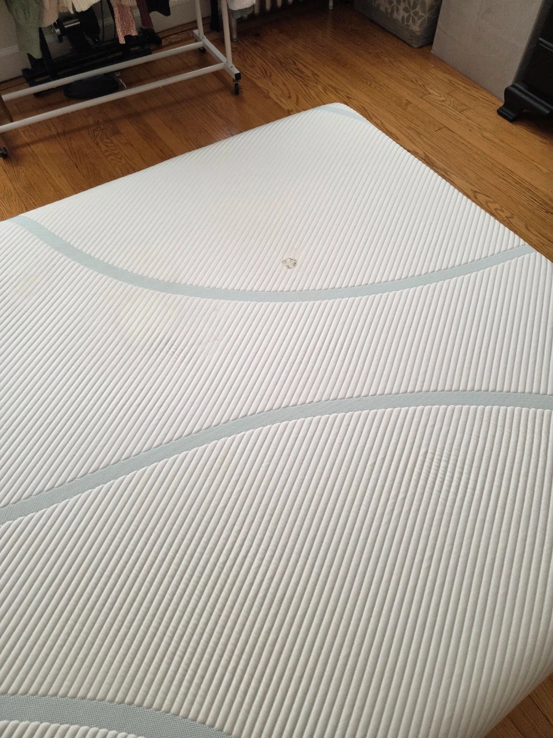 There’s a small burn spot on the mattress with a couple of small holes, but the foam is completely intact; only the outer fabric was affected.