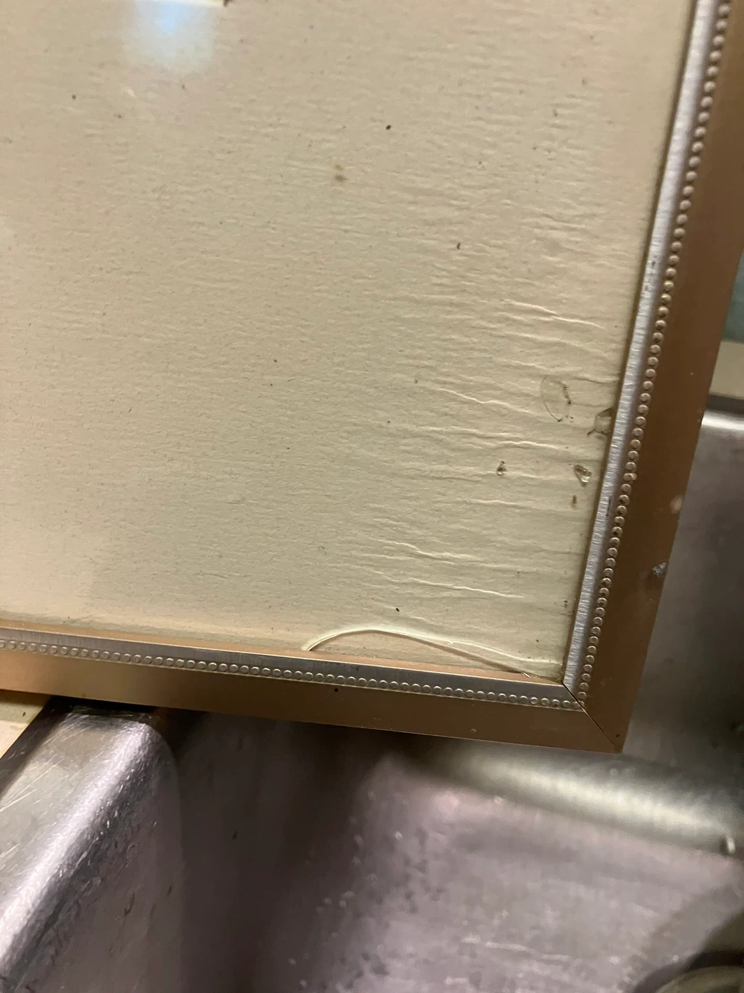 Framed print of the Superstition Mountain Golf and Country Club, Prospector #18. The frame is gold-toned with a beaded edge. Dimensions are approximately 34 inches wide by 24 inches high. It's a nice piece for any golf enthusiast or fan of desert landscapes!