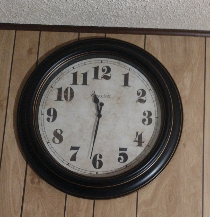 A classic round wall clock from Westclox. It has large, easy-to-read numbers and a black frame. It's perfect for any room in the house!