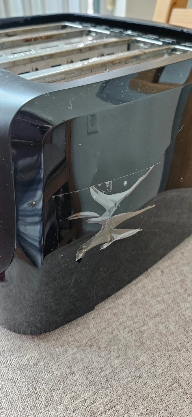 There is a crack on the side of the toaster that I glued, but it works very well and there are no problems.