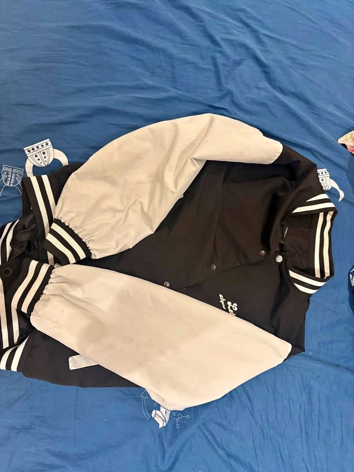 Selling this stylish black and white varsity jacket, size Medium. Classic letterman-style fit with bold contrast sleeves and striped cuffs/collar. Super clean aesthetic — easy to pair with any streetwear or casual outfit. Lightly used. Some minor discoloration on the sleeves (mainly from wear), but no holes or rips. Still has tons of life in it. Tag info: Size M – T10188A. Perfect for fall, layering, or just leveling up a basic fit.