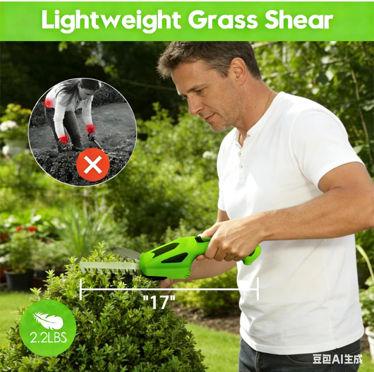 Cordless Hedge Trimmer & Grass Shears, 2 in 1 Electric Hedge Clippers/Grass Trimmer, Battery Hand Grass Cutter Bush Trimmer, 7.2V Hedge Shears for Gardening, Lawn, Yard