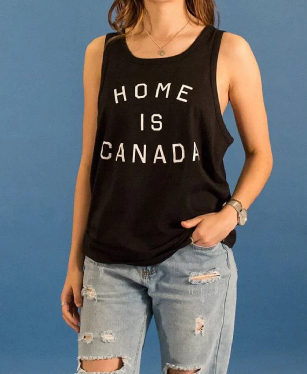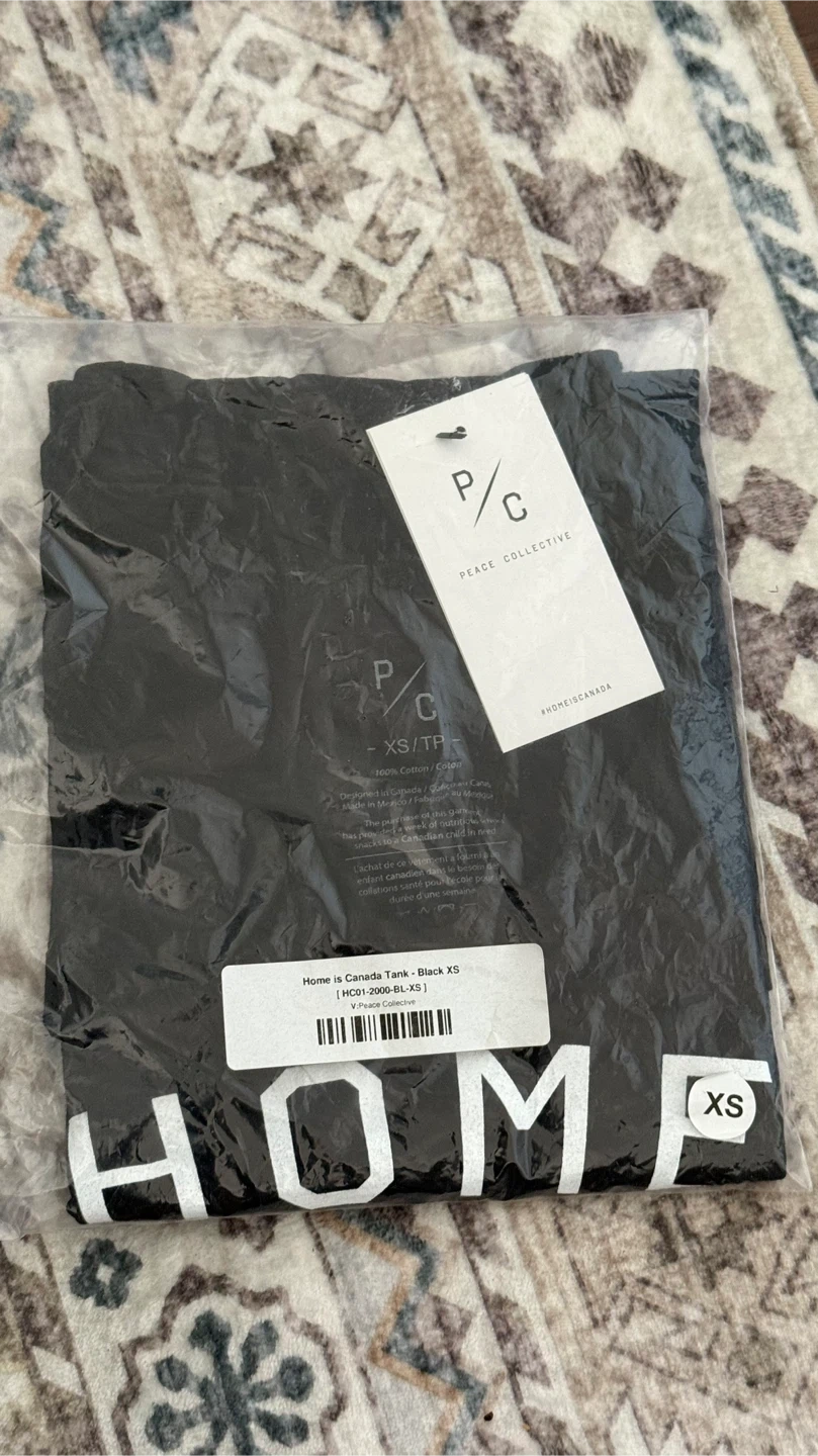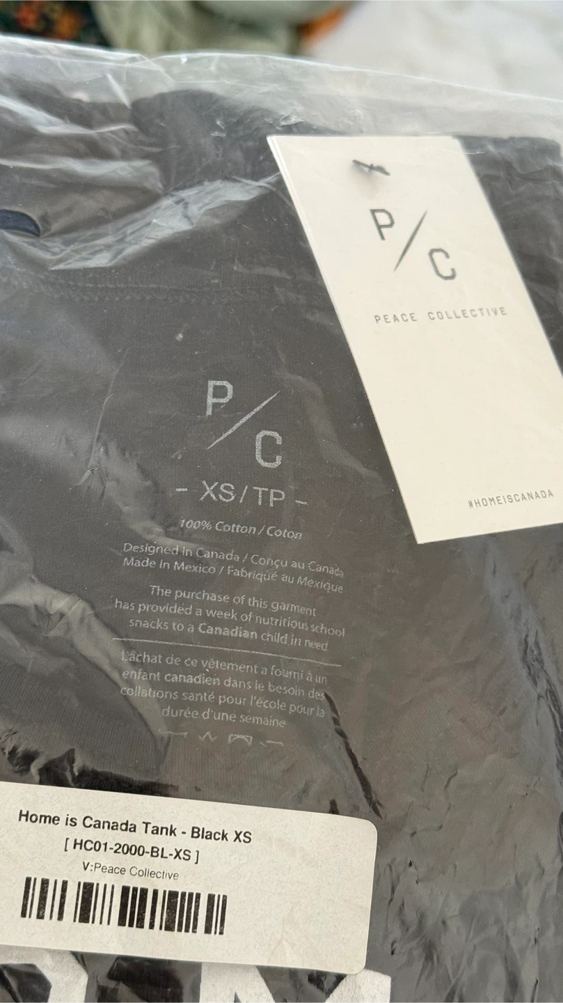 I'm selling a brand new Peace Collective "Home is Canada" tank top! It's black and size XS. This garment was designed in Canada and made in Mexico, using 100% cotton.