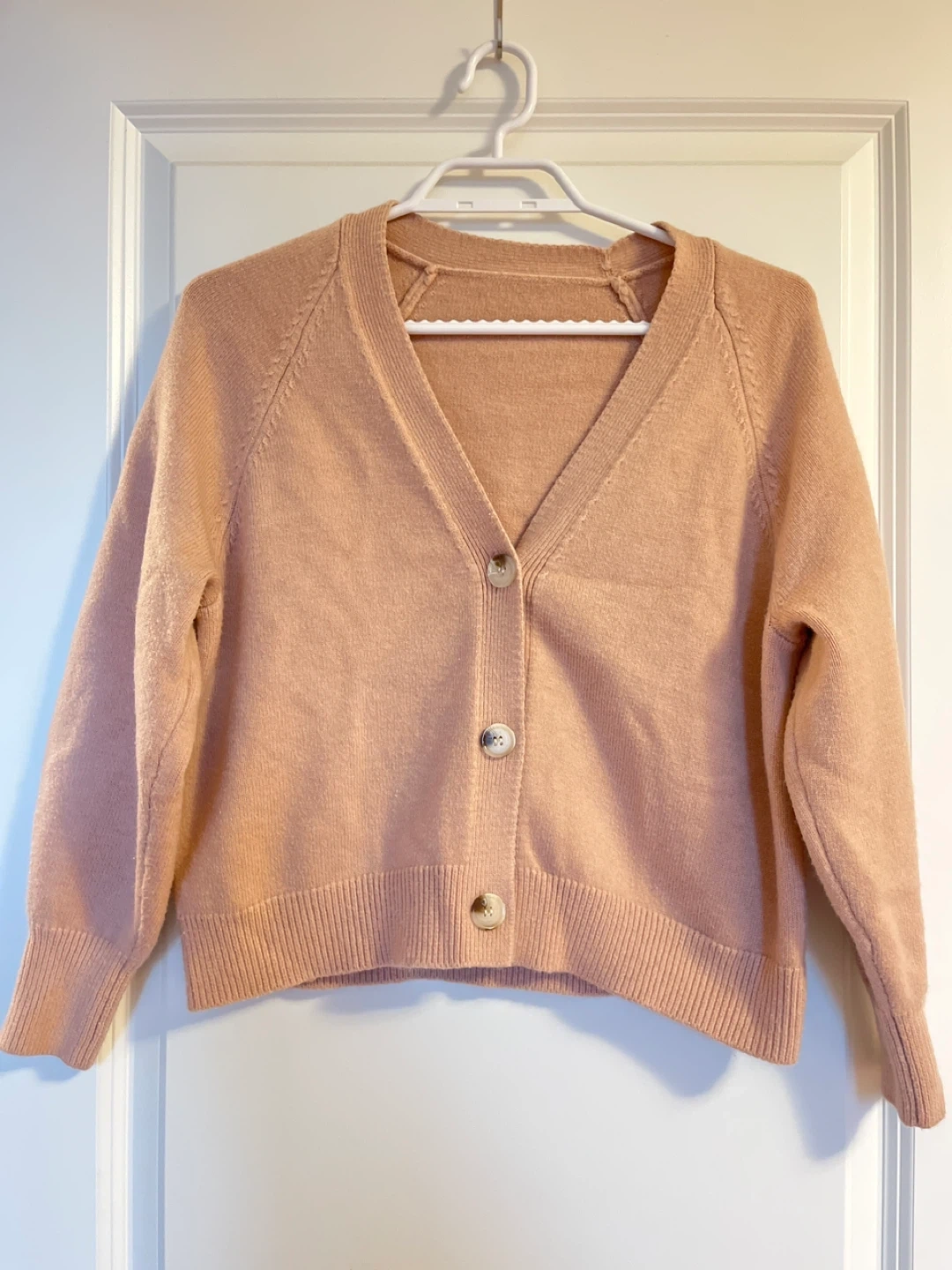 Selling a cute peach-coloured cardigan! It's in great condition and ready for a new home. Perfect for layering or wearing on its own