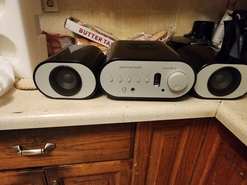 Selling a Peachtree Audio MusicBox integrated amplifier with matching speakers. It's in great condition and provides extraordinary sound. It takes the digital signal directly from your iPod and routes it to the musicBox's built-in high-performance digital to analog converter. Compatible with iPod touch, iPod classic, and iPod nano.
