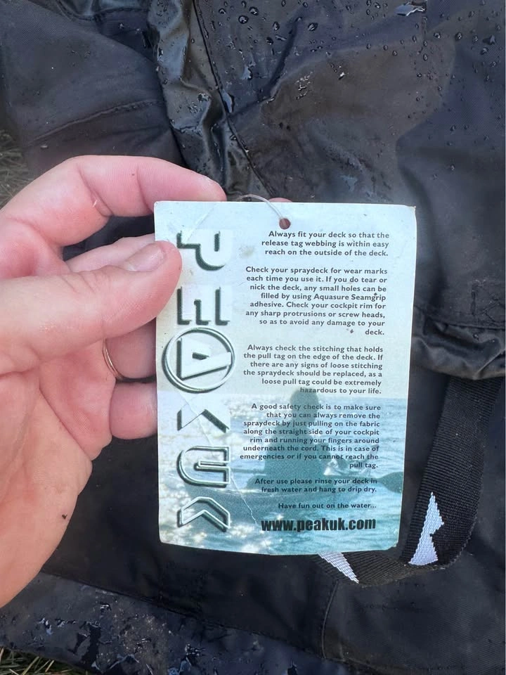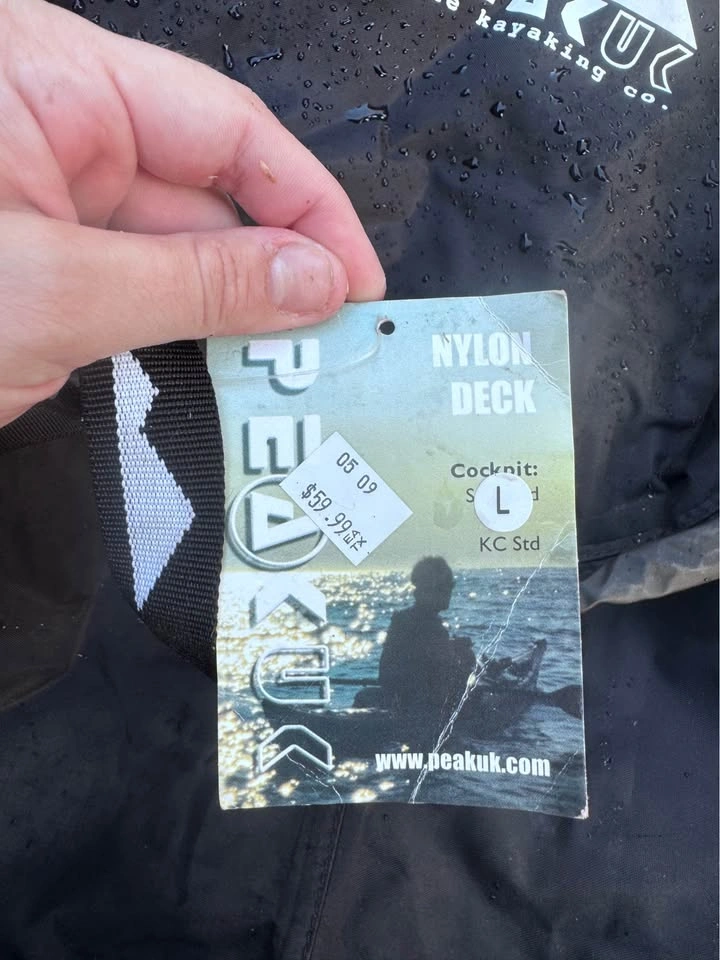 65Like-new Peak UK spraydeck for kayaking. Nylon deck with adjustable straps and KC standard cockpit fit. Size Large for paddler. Great for keeping water out while paddling Have two of them, asking $80 OBO