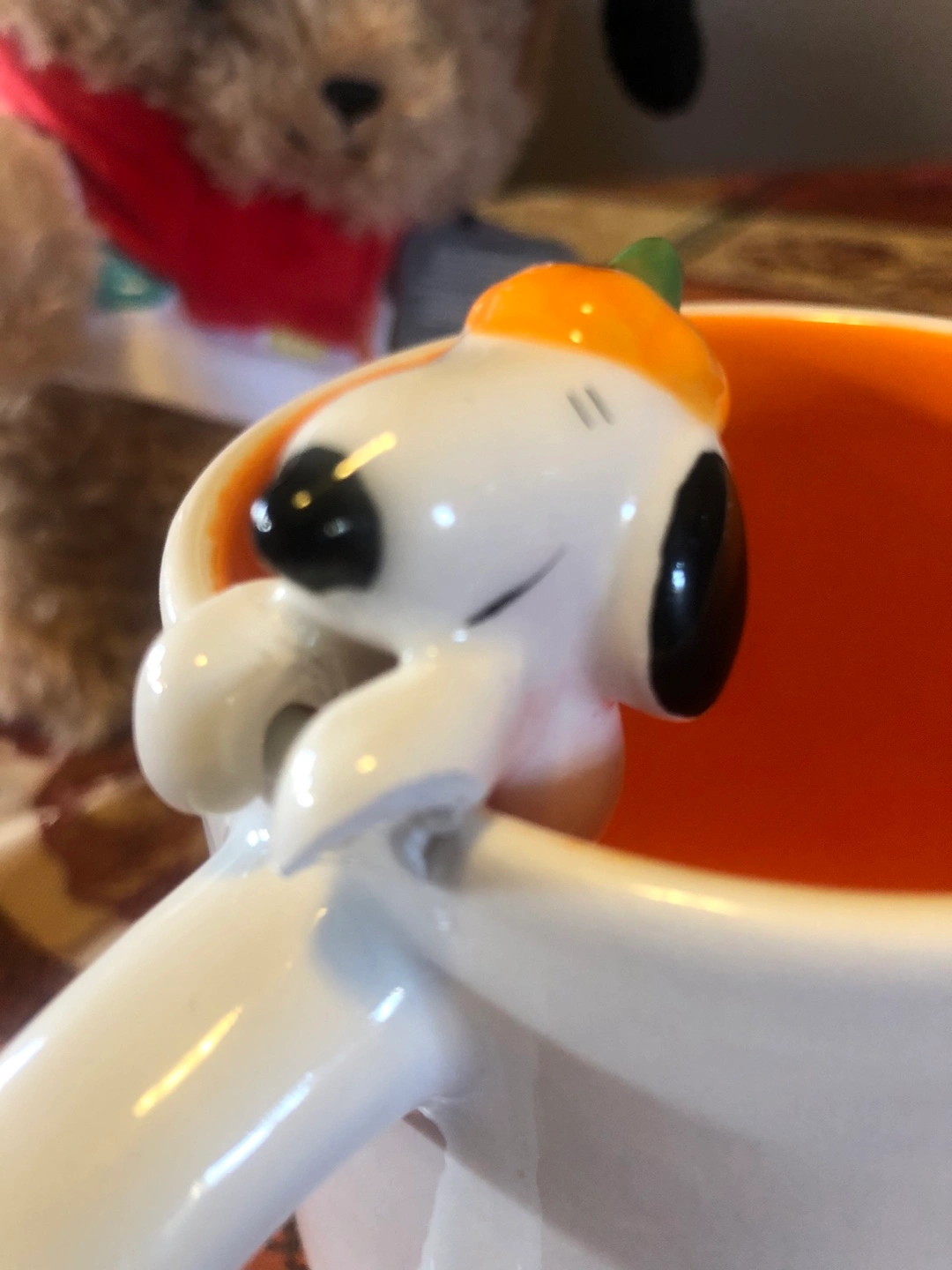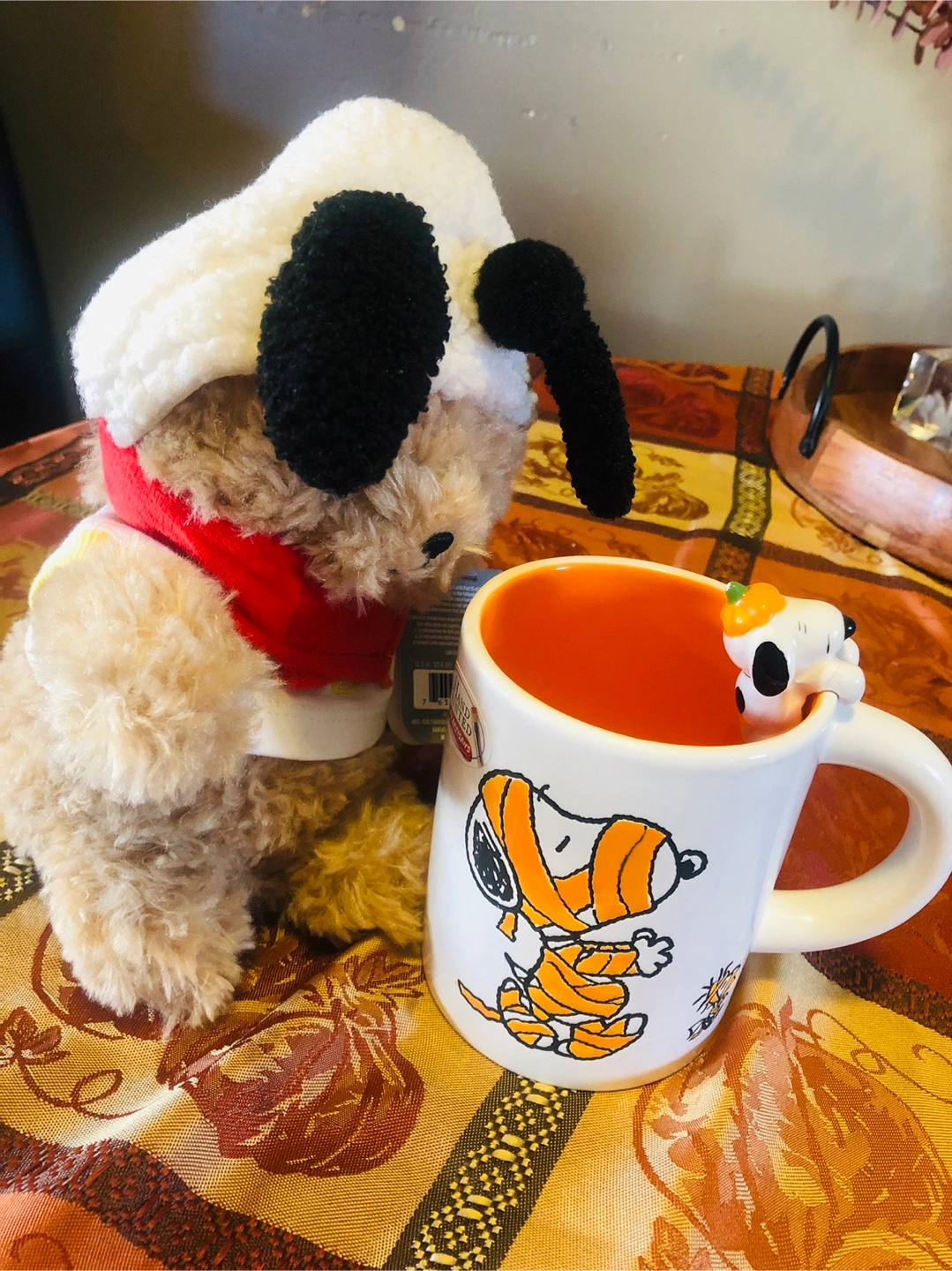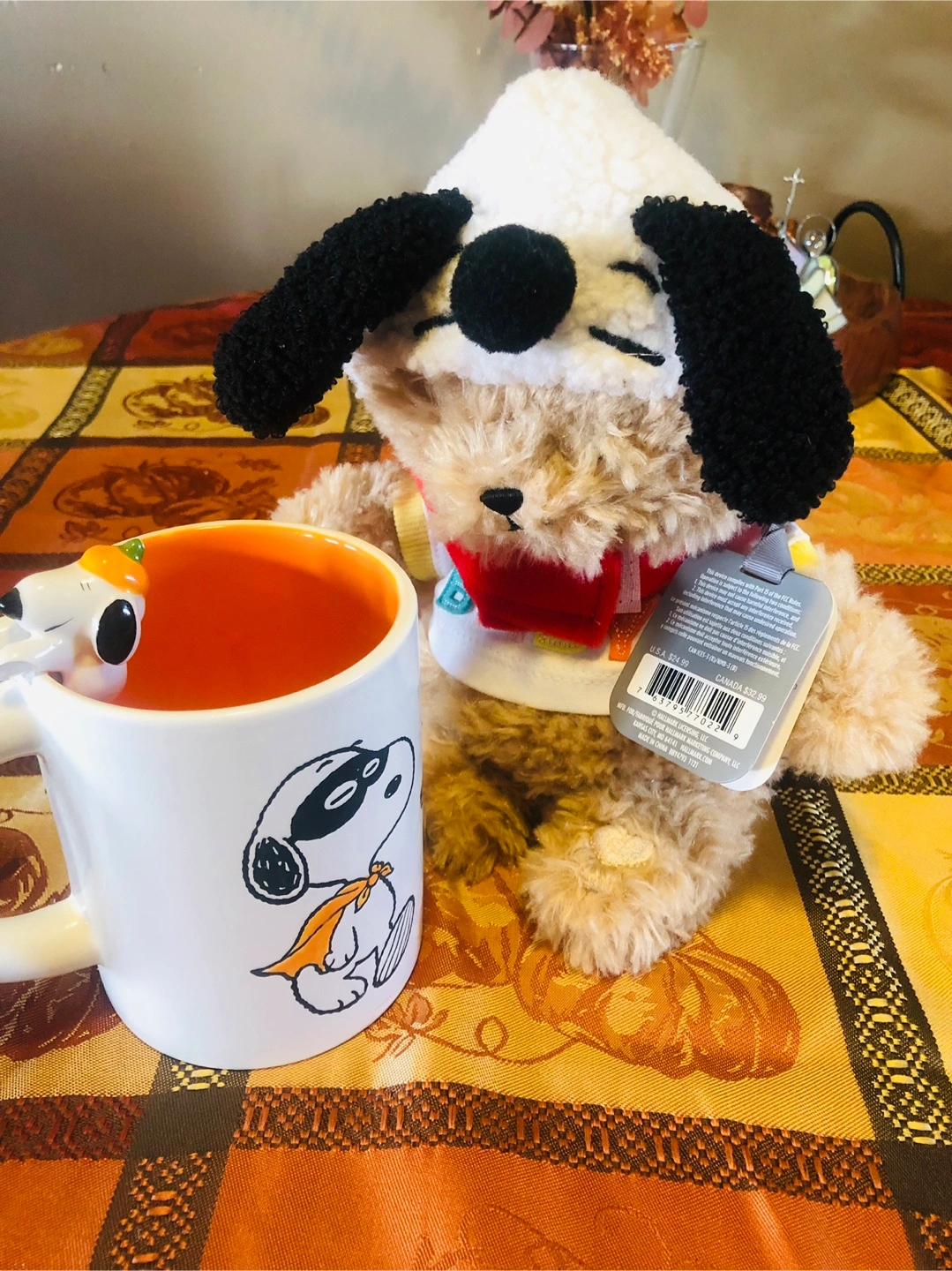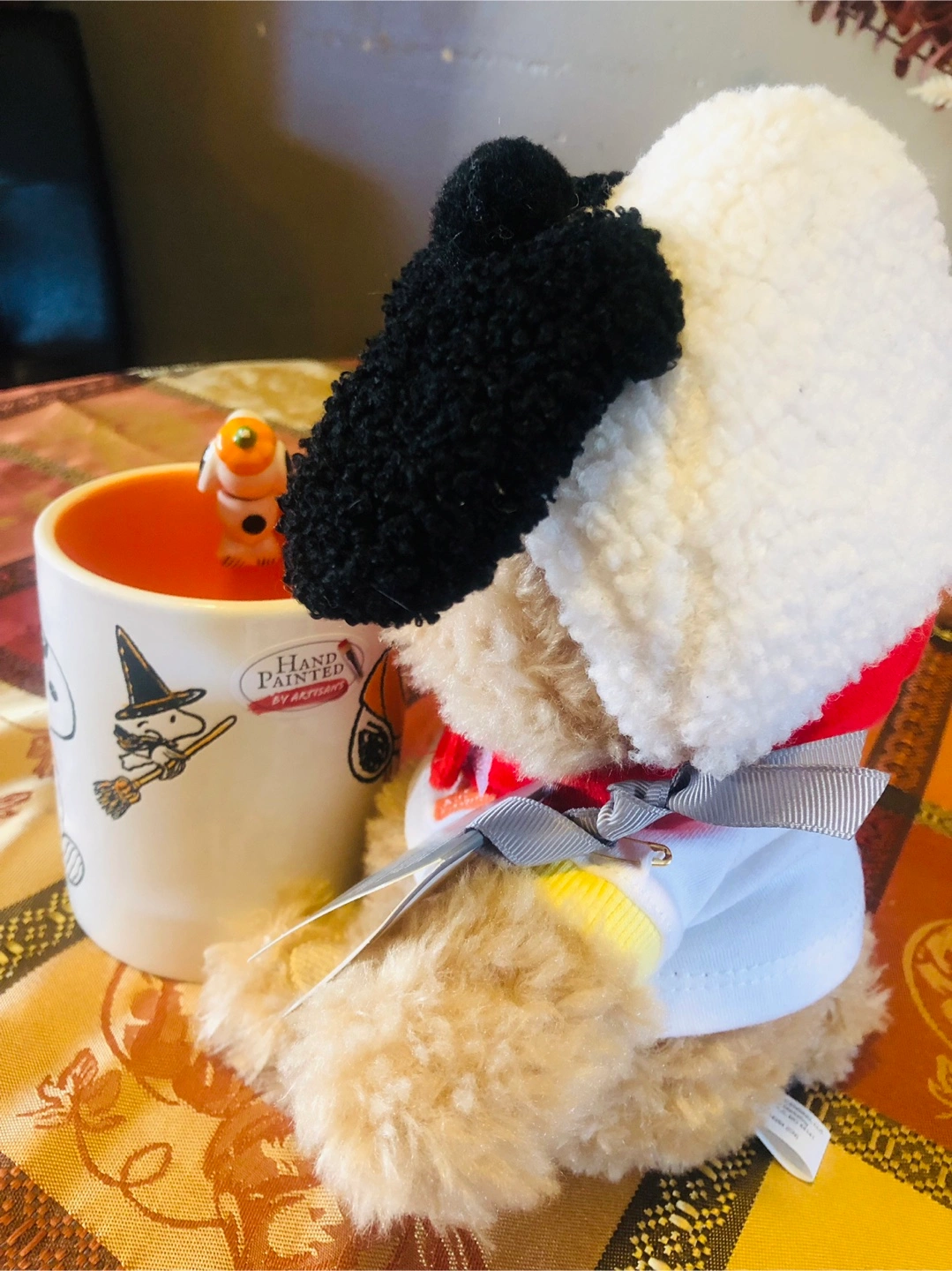 ONLY $8!!! For Both Together! 🎃🍂Super cute Peanuts Snoopy Halloween mug! Features Snoopy dressed as a superhero on the front and Snoopy as a Mummy on the back. The mug is white with an orange interior and has a small Snoopy figure with a pumpkin on the handle. (Has a chip gone from Snoopy paw doesn’t affect anything though) Perfect for your Halloween coffee or tea! 🌟✨AND Adorable Halloween Bear Dressed up as Snoopy!!! 🧸It’s a NEW BEAR NOT USED STILL WITH TAGS FROM HALLMARK!!! Amazing Price, Firm Price