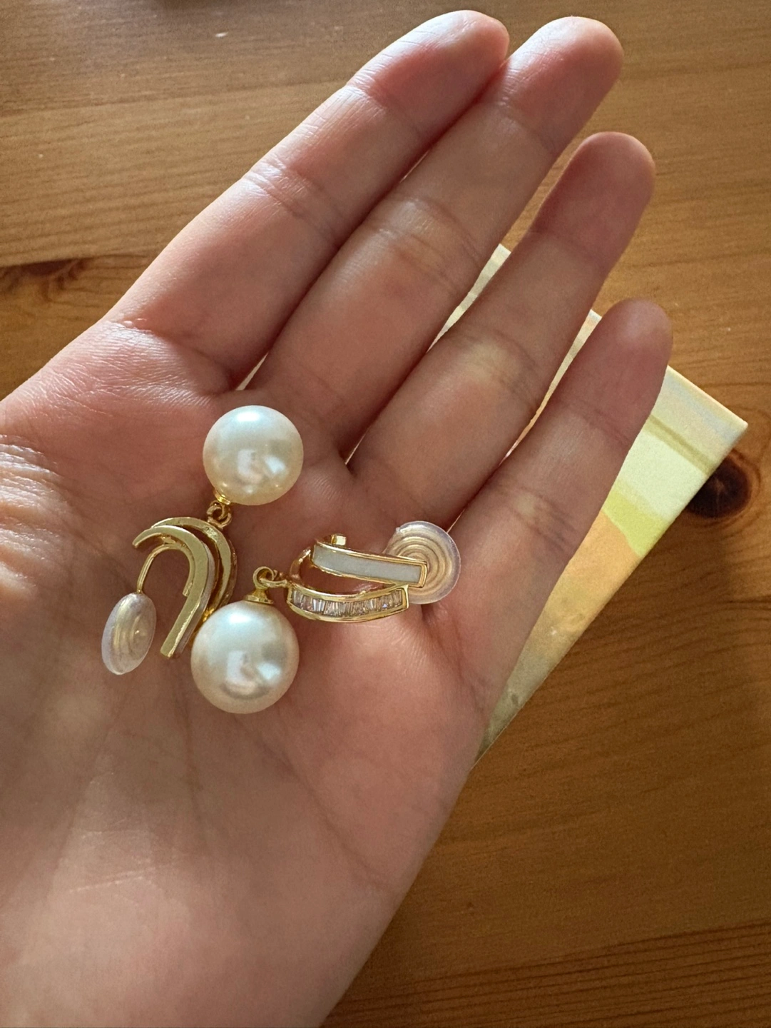 74Gold-tone earrings with faux pearl and cubic zirconia accents. Clip-on style.
