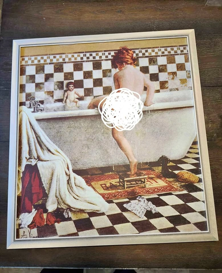 Size is 21.5" length and 22.5" height. It does show the little fanny but I blurred it just in case... Would look nice in a bathroom :) Pick up in Welland!