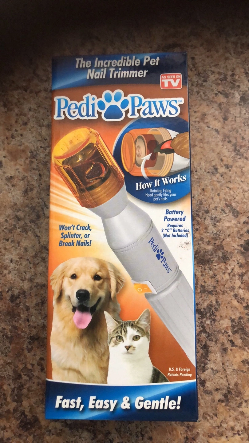 New, never used. Battery-powered nail trimmer for pets. Rotating filing head gently trims your pet's nails. Fast, easy and gentle. Won't crack, splinter, or break nails.