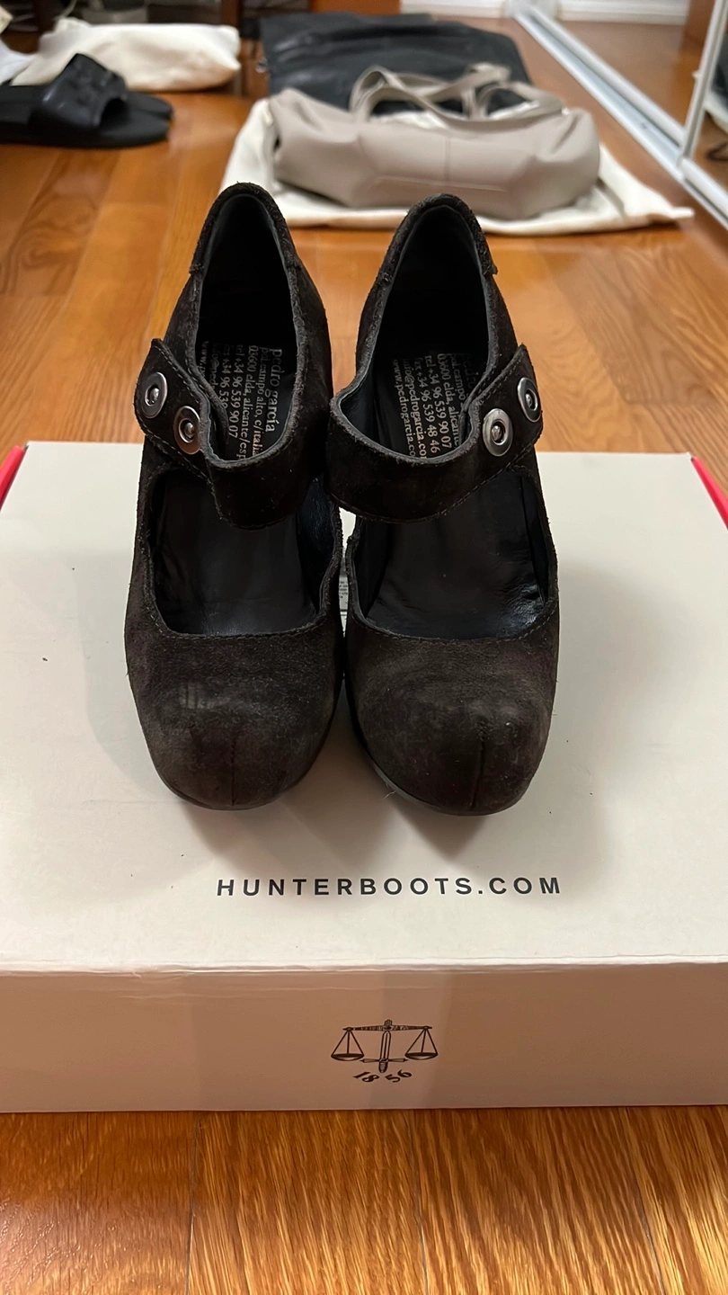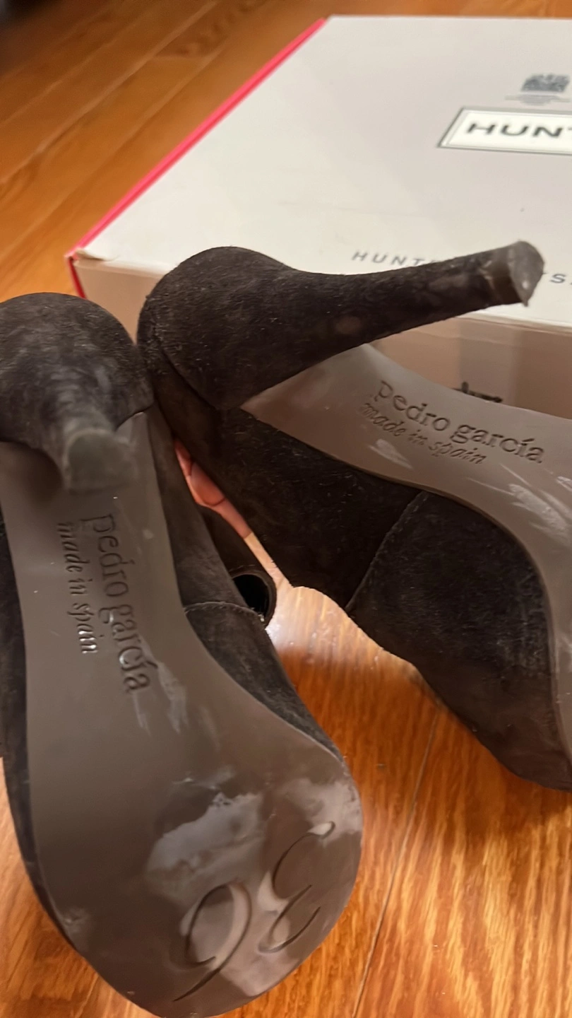 Selling a pair of Pedro Garcia heels. They are made in Spain and feature a suede material with a strap and button detail. Bought at Holt Renfrew , sticker still on them Only wore them inside once